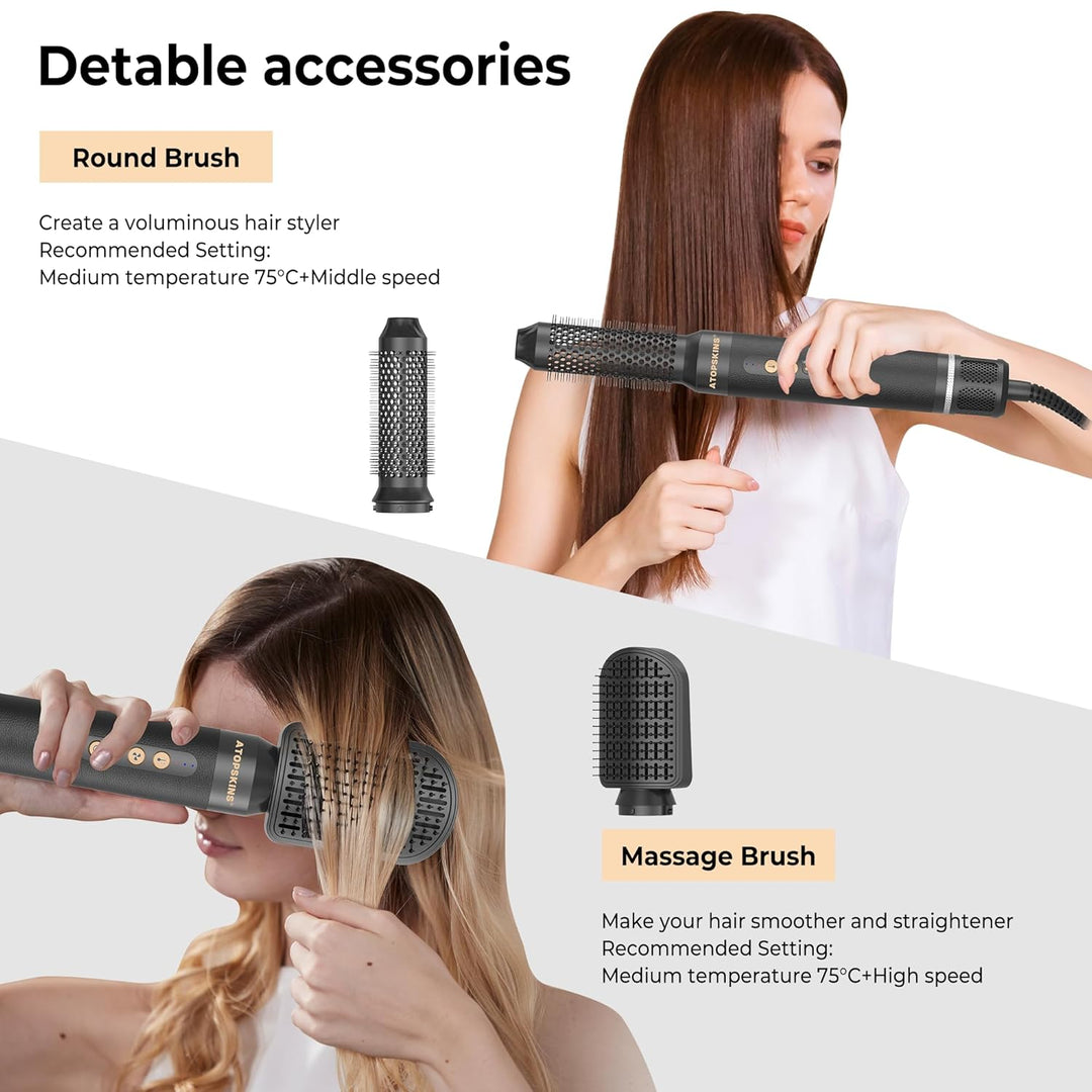 - 【7 in 1 Hairstyler - Airstyler 】 Dieser 7 in 1 warmluftbürste set enthält 1 * fön, 1 * rundbürstenföhn, 2 * Air Lockenstab, 1 * glättbürste, 1 * föhn diffusor, 1*Stylingdüse, Der Curf, glatt, mit Volumen und Stil, ionischer Pflege, erfüllt