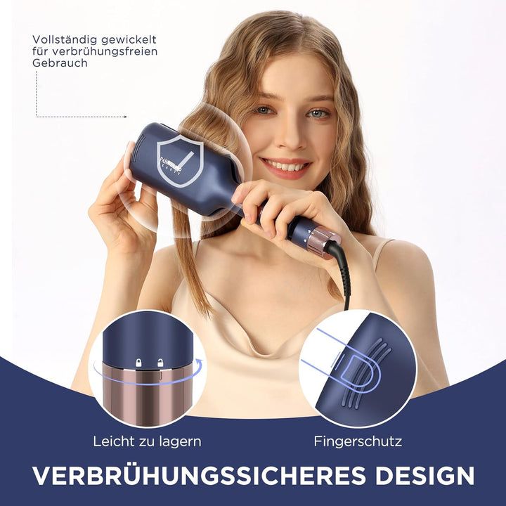 - Sicherheitsverschluss für bequeme Aufbewahrung - Wenn das Fass abgekühlt ist, brauchen Sie nur den Sicherheitsverschluss in die Verriegelungsposition zu drehen, um es aufzubewahren. Dieser Welleneisen ist eine gute Wahl für das Senden von Geschenken