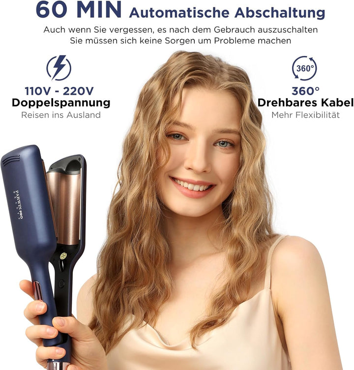 - Meerjungfrau Grosses Welleneisen - 2 Fässer Meerjungfrau Welleneisen Erstellen Sie sofort Big Waves ohne Erfahrung, sein freundlich für Anfänger, lang anhaltende Frisur, die für den ganzen Tag bleibt.