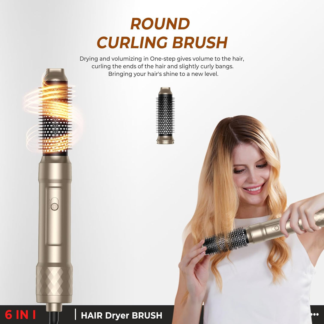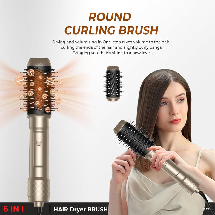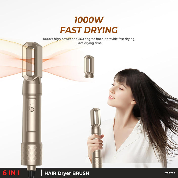 - ⭐【Perfekt Geschenke】 Das 6 in 1 hair styler set kombiniert einen Haartrockner mit dem beliebten Heissluftbürste nkopf-Design, ergonomisches Design, einfacher Knopf, 360 ° rotierende Stromkabel, das erste airstyler kit für Ihr Party -Look. Die