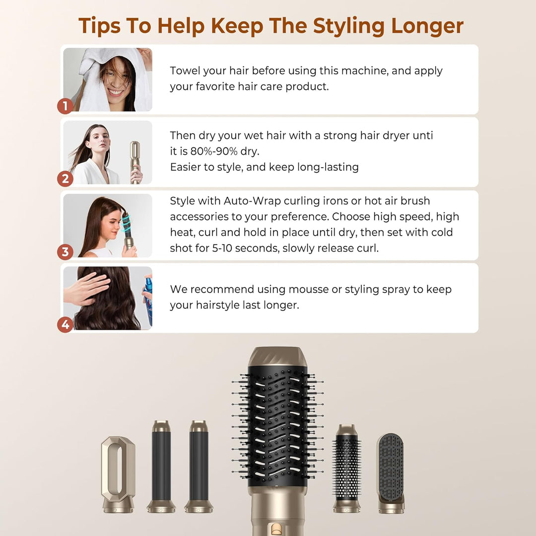 - ⭐【Air Styler All In One】Rundbürstenföhn Erzeugt voluminöse, glatte und natürliche Locken ohne extreme Erhitzung. föhnbürste warmluftbürste set mit 5 austauschbaren Bürstenaufsätzen geliefert, die das Föhnen, Glätten, Locken, Volumengeben