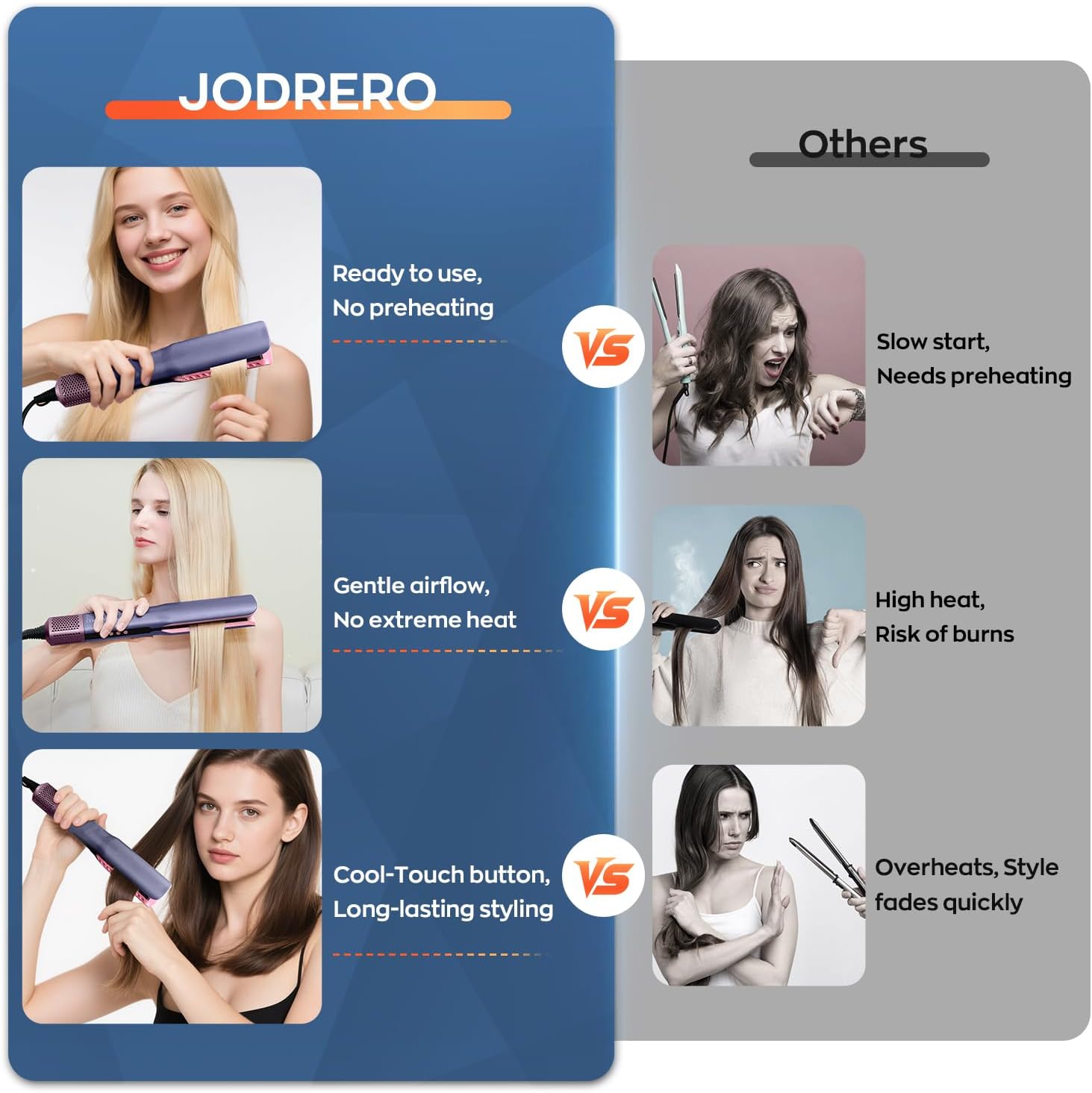 - 【Glättet das Haar mit Luft, ohne extreme Hitze】Trocknen und glätten Sie Ihr Haar sanft nur mit Luftstrom – ganz ohne Hitzeschäden. Kraftvolle und präzise Luftströme hinterlassen das Haar weich, geschmeidig und leicht kämmbar. Trocknen und