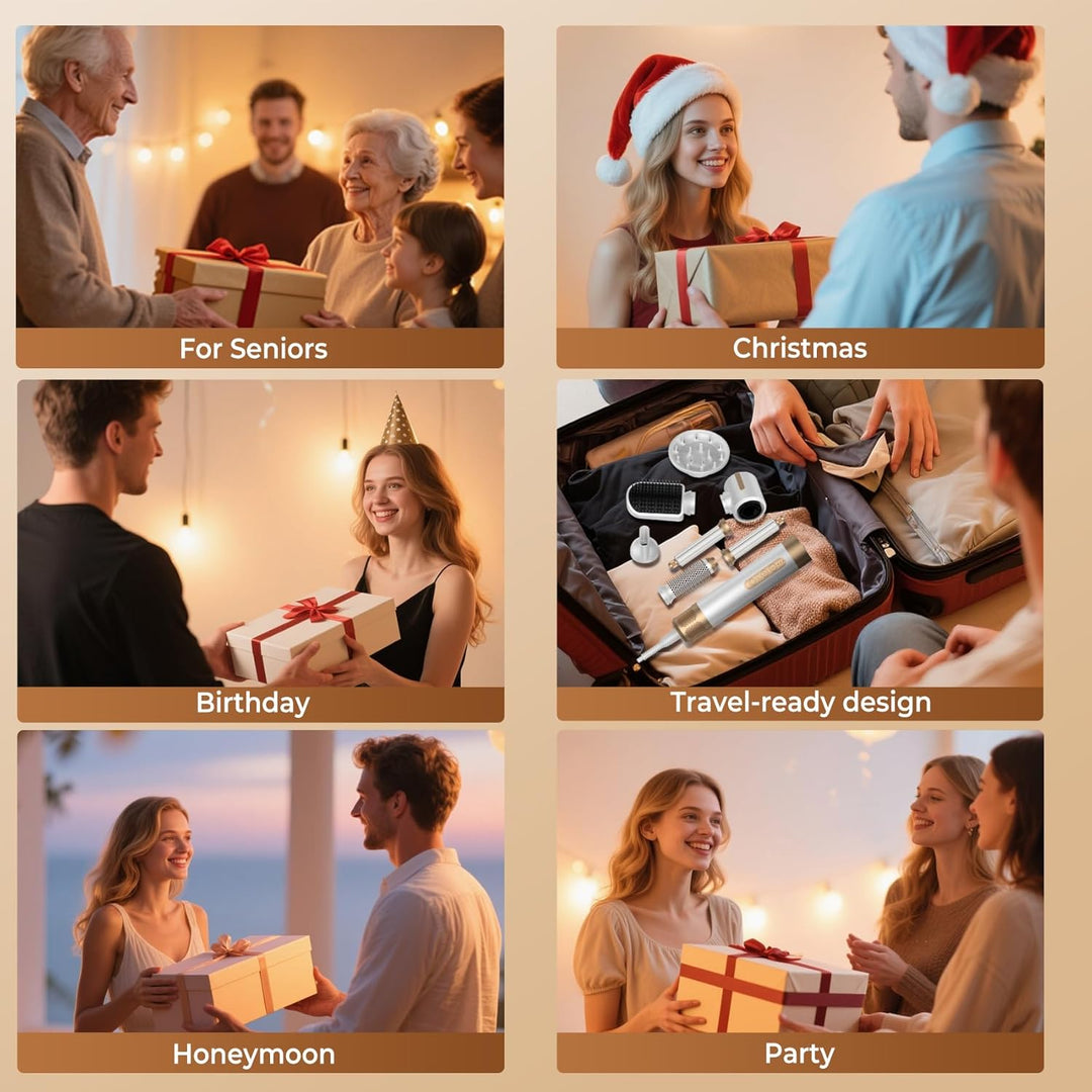 - 【Einzigartiges Design】 Das hair styler set 7 in 1 Set kombiniert einen ionen haartrockner mit dem beliebten Luftwickel-Lockenwicklerkopf-Design. Sie können ihn mit verschiedenen Bürstenköpfen kombinieren, um trendige Looks zu kreieren. Die