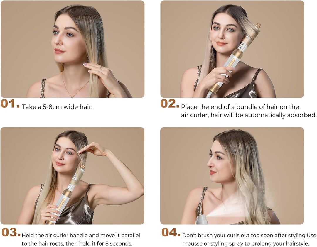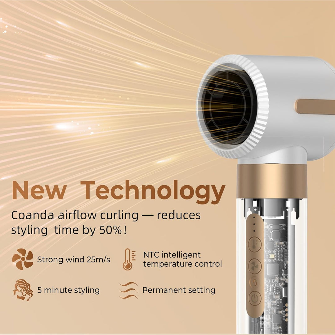 - 【Curly All In One Air Styler】Ein starker Luftstrom strömt aus dem Lockenstabaufsatz und bildet kontinuierlich einen Luftstrom im Uhrzeigersinn um den Lockenstab, der den Coanda-Effekt verstärkt und dafür sorgt, dass das Haar automatisch an der