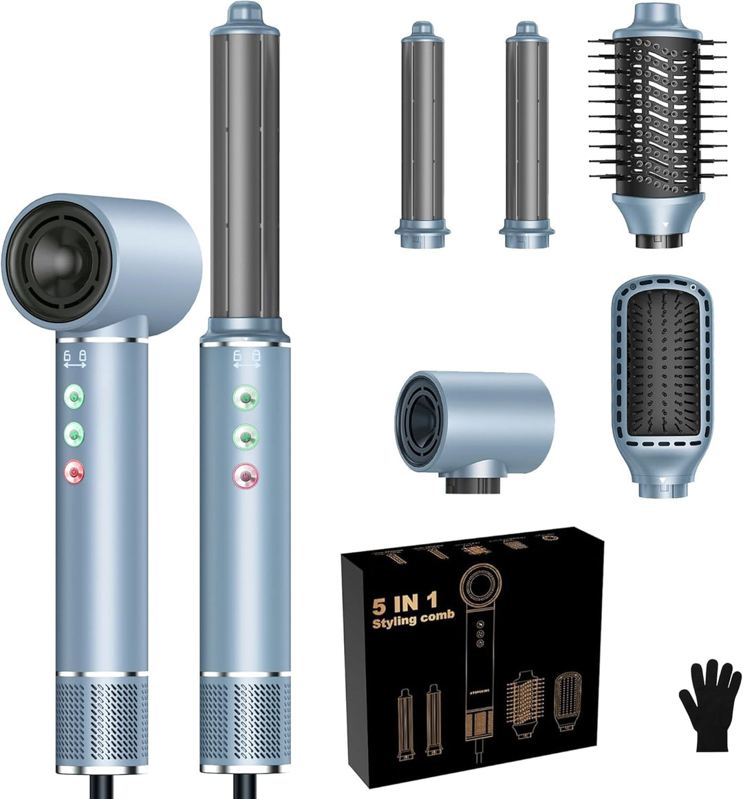 - 【5 in 1 Hair styler 】Dieser air hairstyler 5 in 1 enthält 1 * Haartrockner schnellen Trocknen, 1 * rundbürstenföhn, 2 * left & right Automatischer Luft-Lockenstab zum Locken, 1 *Volumenbürste zum Volumenbildung, die Ihre vielfältigen
