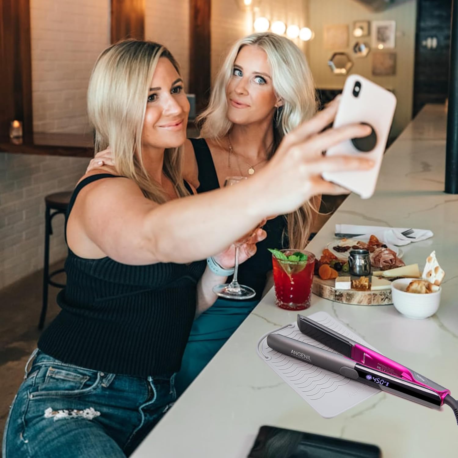 - 🌟【3D-Titanplatte】ANGENIL Dieser professionelle Haarglätter verfügt über eine ultra-glatte Titanplatte, die sowohl Locken als auch glattes Haar unglaublich geschmeidig macht, ohne zu ziehen, Hitzeschäden zu verursachen oder unangenehme Gerüche