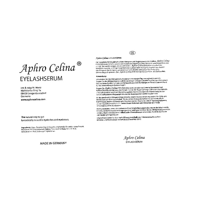 - Aphro Celina Eyelashserum verlängert die Wachstumsphase und verzögert zugleich den Ausfall der Wimpern und sorgt somit für traumhaft schöne Wimpern und Augenbrauen