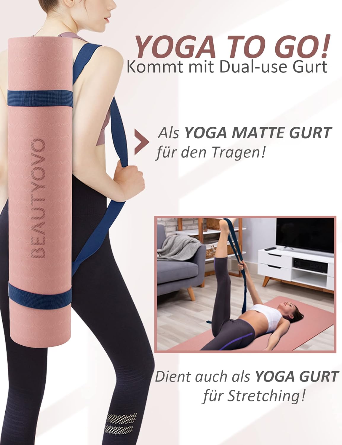 - ▨ TRAGBARE MATTE MIT TRAGEGURT -- Wird mit einem doppelt verwendbaren Gurt geliefert. Es kann als travel Yoga Mat Tragegurt oder Yoga Dehnungsgurt verwendet werden! BEAUTYOVO TPE reise Yogamatte dicke wiegt nur 3 Pfund, Sie können sie in ein