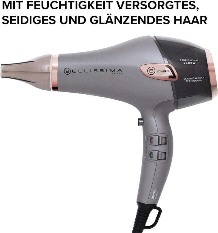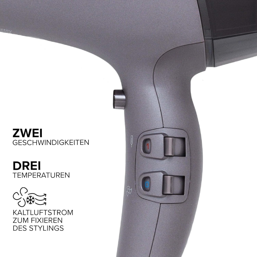- Professioneller Motor: Der professionelle 2300-W-Wechselstrommotor verleiht dem Haartrockner eine lange Lebensdauer und eine hohe Durchflussrate des Luftstrahls; kombiniert mit der Leistung von 2300 W ermöglicht es schnelles Trocknen und effektives