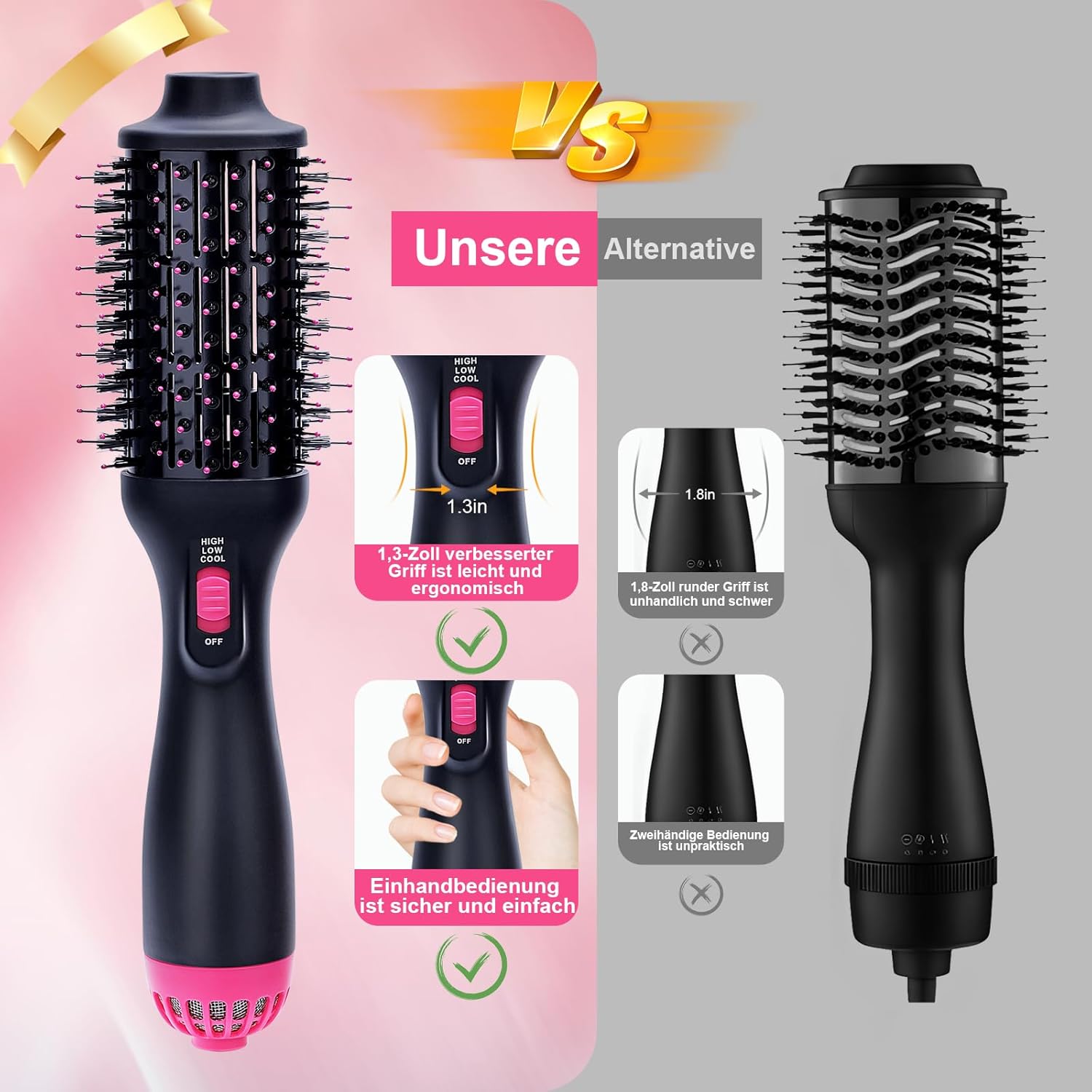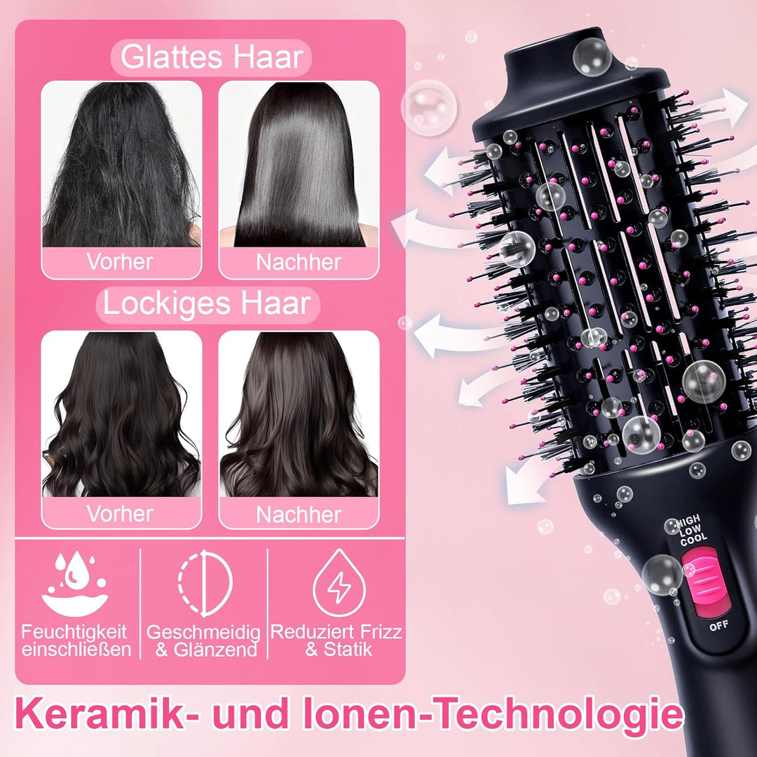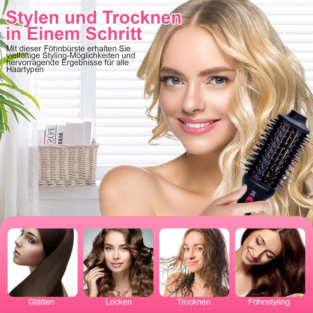 - Sanfte Haarpflege, tolles Geschenk: Der Haarbürstentrockner bietet eine modernisierte Möglichkeit, Haare zu trocknen, zu glätten und zu locken. Geeignet für den Familiengebrauch und alle Frisuren. Diese Heissluftbürste wird ein guter Helfer für