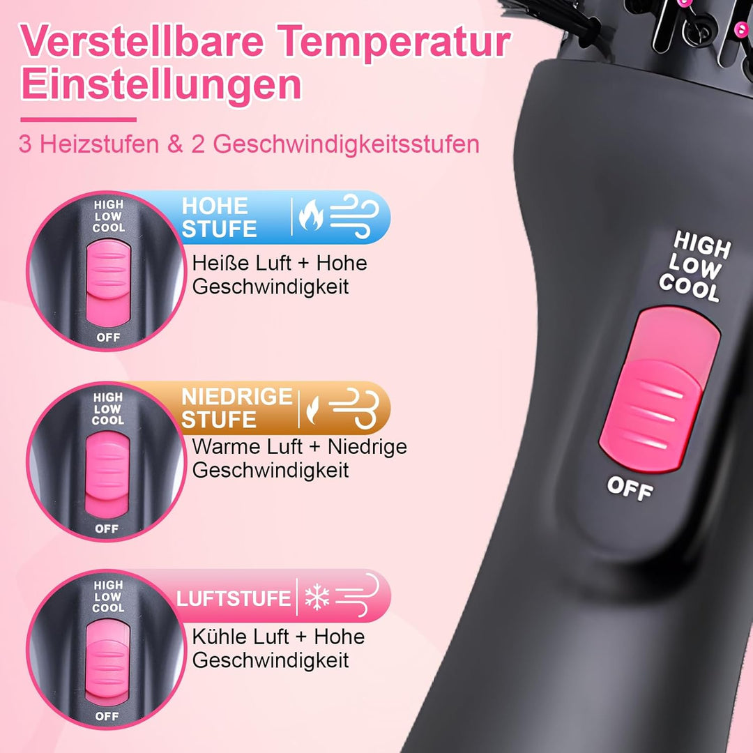 - Stylen und trockenes Haar in einem Schritt: Die Heissluftbürste verfügt über 2 Heizstufen: kalt und heiss. 3 Temperatureinstellungen: niedrig, mittel und hoch. Mit dieser Haartrocknerbürste erhalten Sie Vielseitigkeit beim Styling und tolle