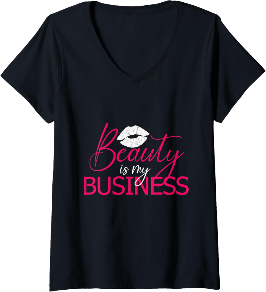 Damen Beauty Is My Business Make Up MUA Salon Kosmetikstudio T-Shirt mit V-Ausschnitt