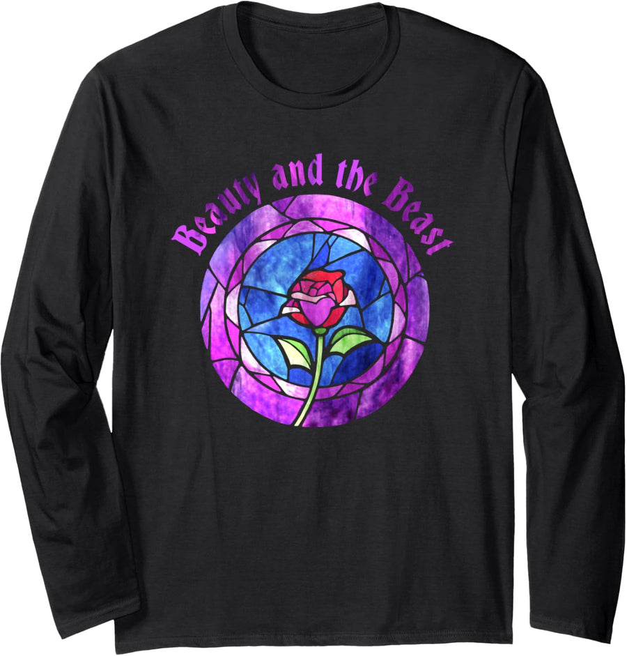Disney Beauty & The Beast Glass Rose Logo Langarmshirt