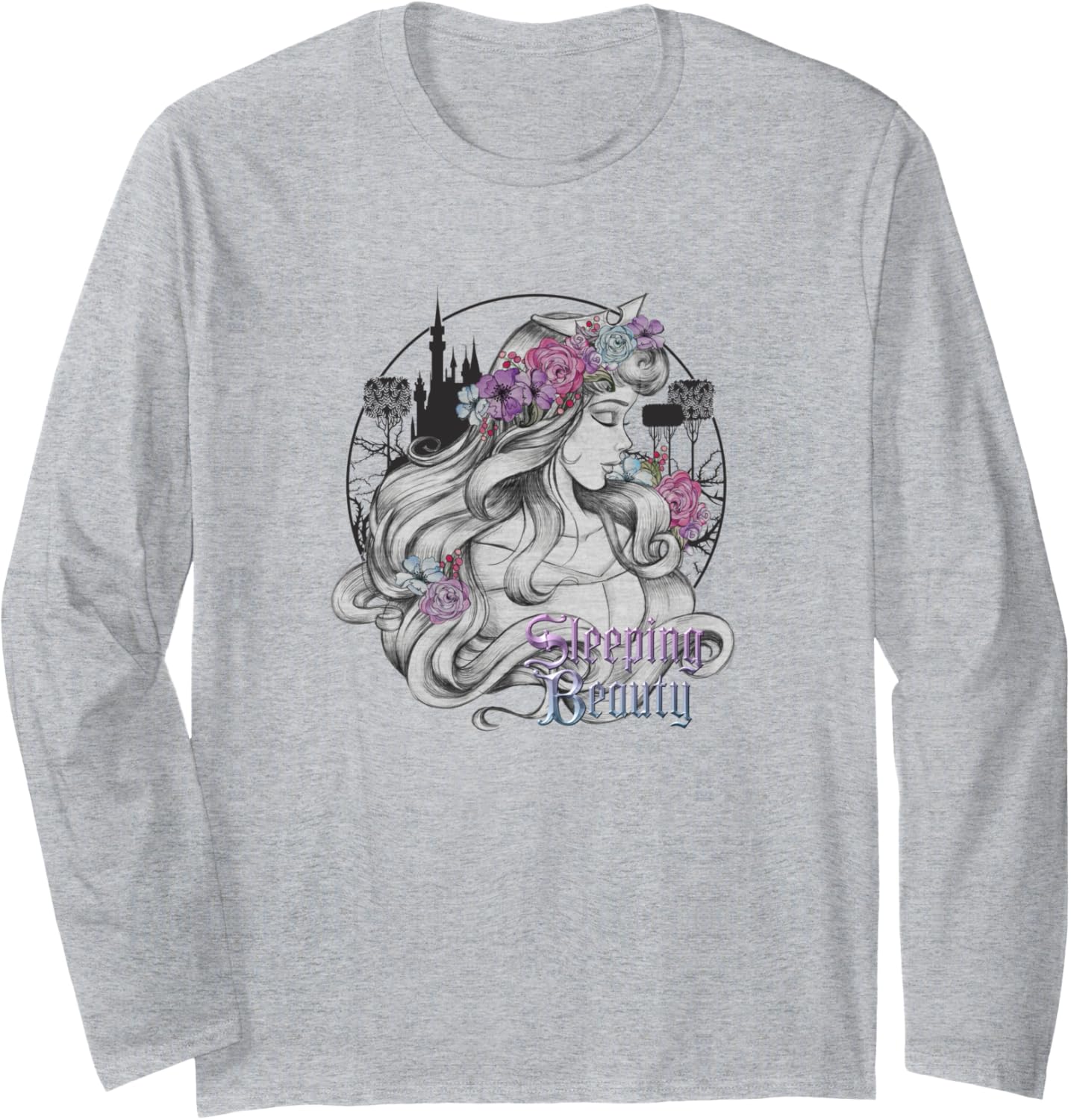 Disney Sleeping Beauty Floral Sketched Portrait Langarmshirt