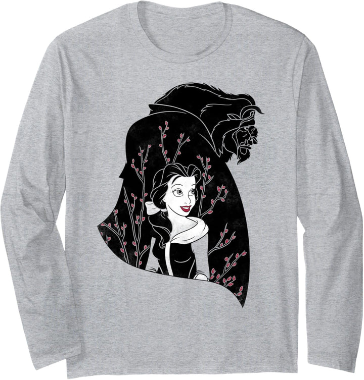 Disney Beauty And The Beast Belle and Beast Silhouette Fill Langarmshirt