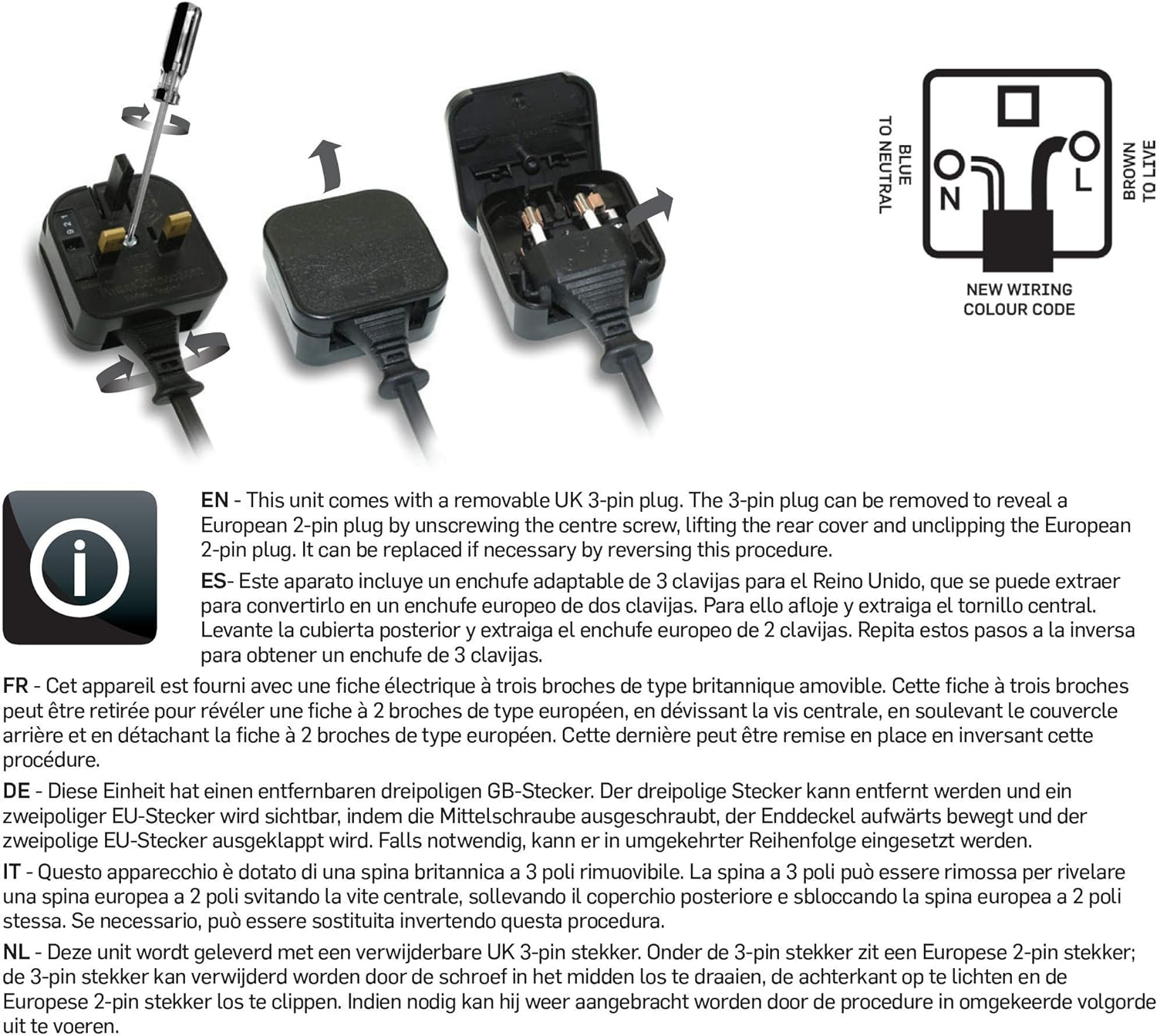 - Kommt mit UK/EU-Steckeradapter für Reisen und einfaches Styling weltweit (UK-Stecker kann durch Abschrauben entfernt werden, um den EU-Stecker freizulegen – Schraubendreher erforderlich, nicht im Lieferumfang enthalten)