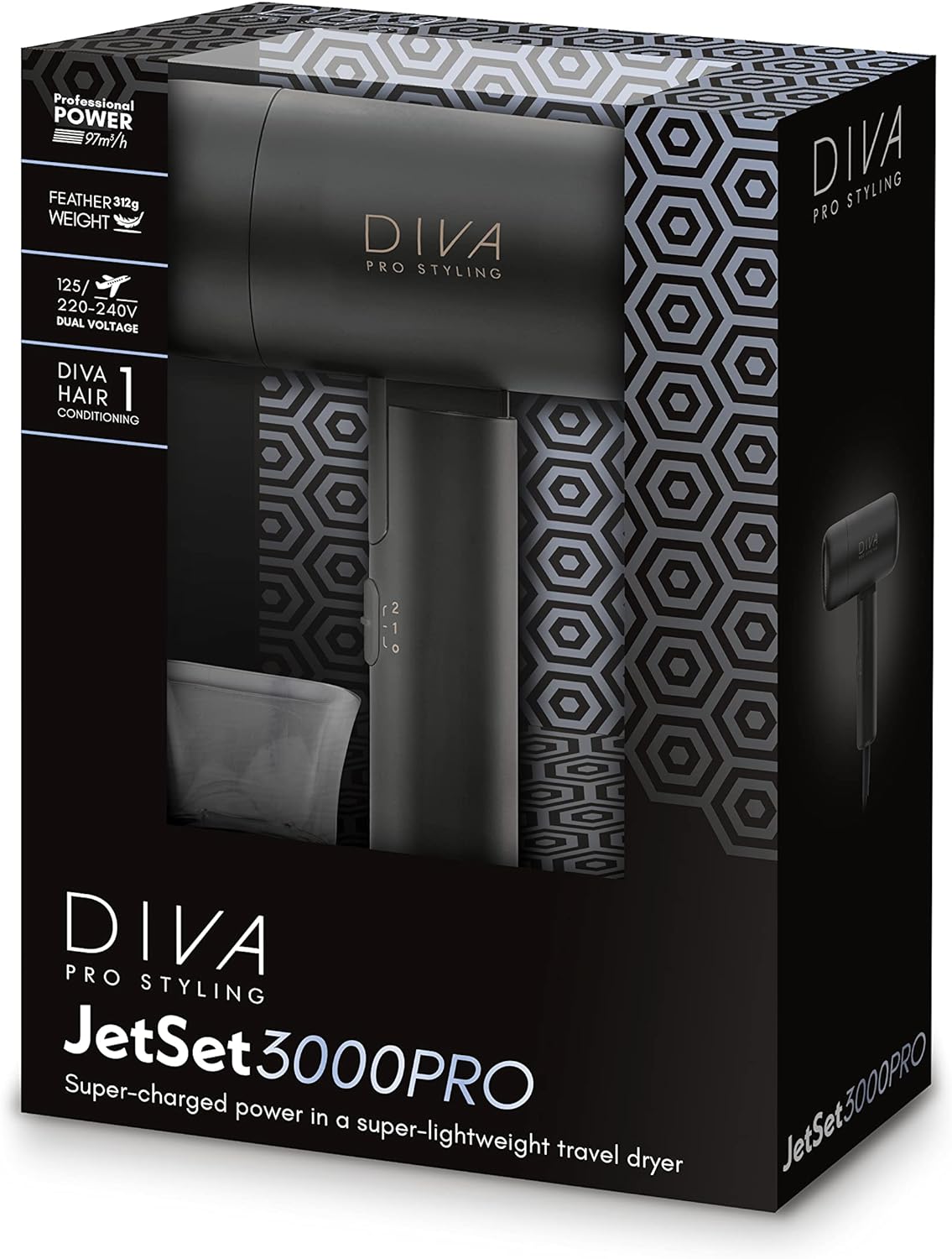 - Der Jet Set 3000 Pro ist ein superkompakter, leichter Reiseföhn mit überragender Leistung. Mit einem Gewicht von nur 312 g und einem klappbaren Griff ist er wirklich der ultimative Reisetrockner