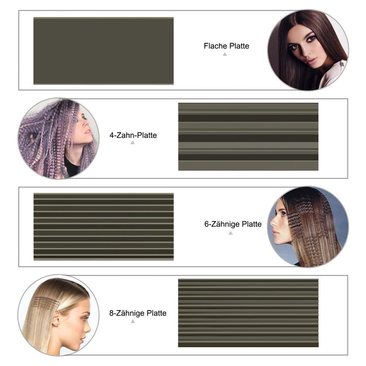 - 4 austauschbare Titan-Keramik-Wellenplatten, wählen Sie eine Platte, wählen Sie eine Frisur.