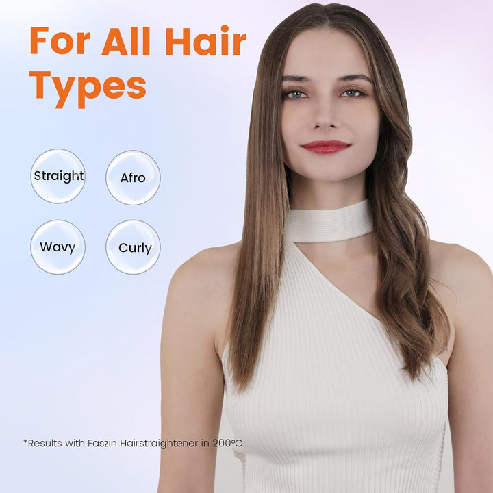 - 【EINZUGSGLÄTTUNG】Titanplatten sind 150% glatter als Keramikplatten und erleichtern das Styling. Die Faszin HeatSyncX-Temperaturkompensationstechnologie reduziert Temperaturschwankungen und sorgt dafür, dass die Hitze gleichmässig vom Ansatz bis zu
