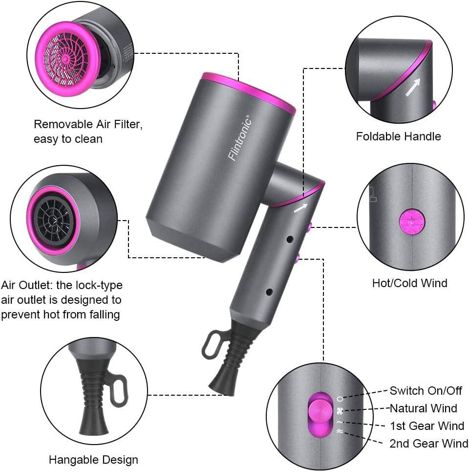 - 💜【OVERHEATING PROTECTION DEVICE】To effectively prevent heat damage; AC motor, long life span, low consumption, low failure rate; Hair dryer is small and convenient to carry (the size is about the same as an iphone X, and the cable length is 2.5 m)