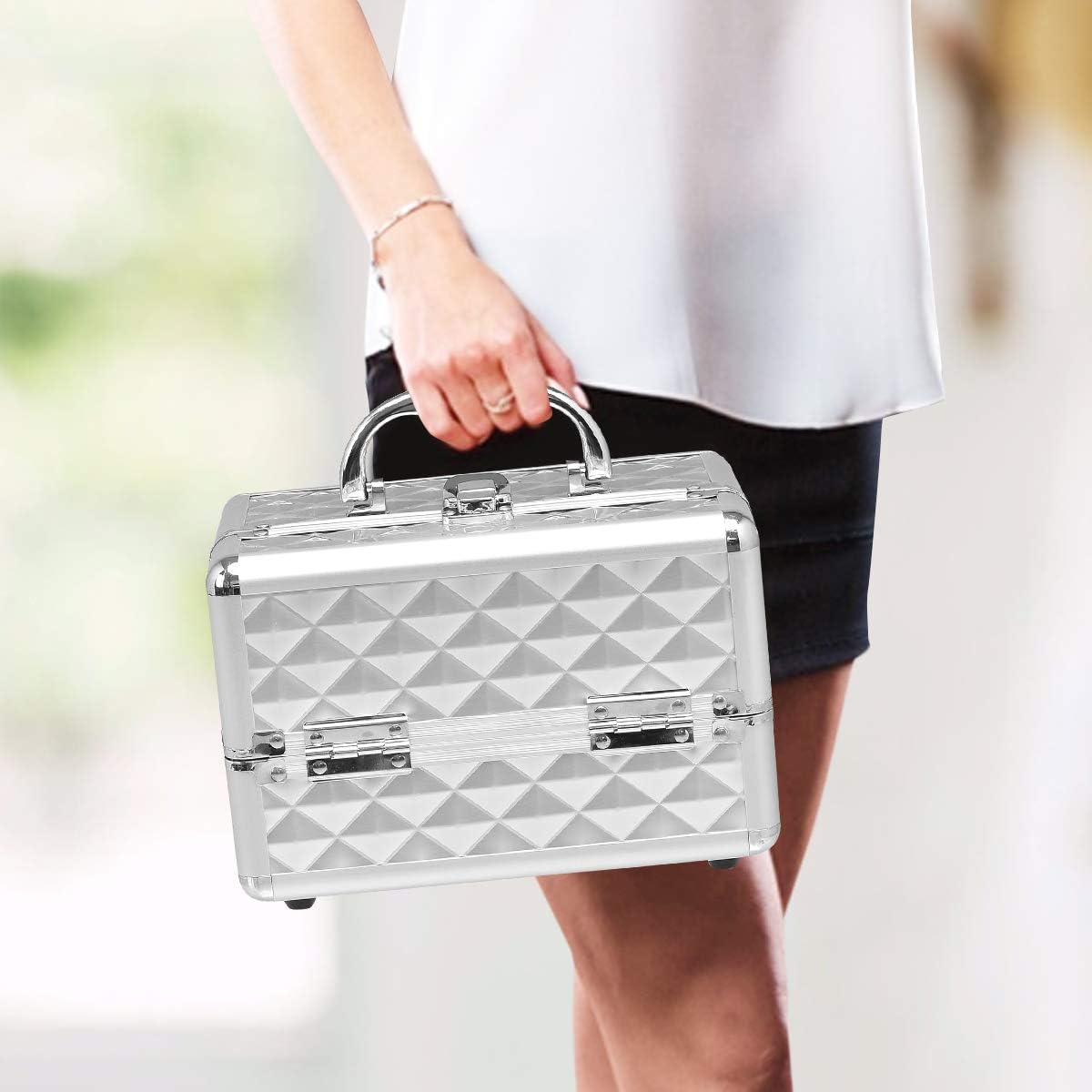 - Modisches und edles Design - Das geprägte Rautenmuster und die klassische und schlichte Farbe bilden zusammen einen modischen Stil, der den Schminkkoffer elegant und charmant macht. Durch die feine Verarbeitung ist die Oberfläche des Kosmetikkoffers