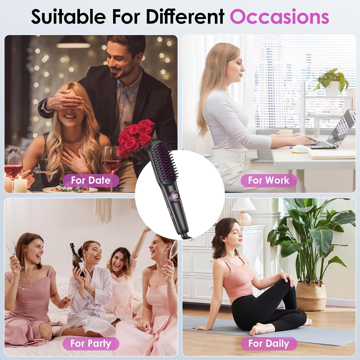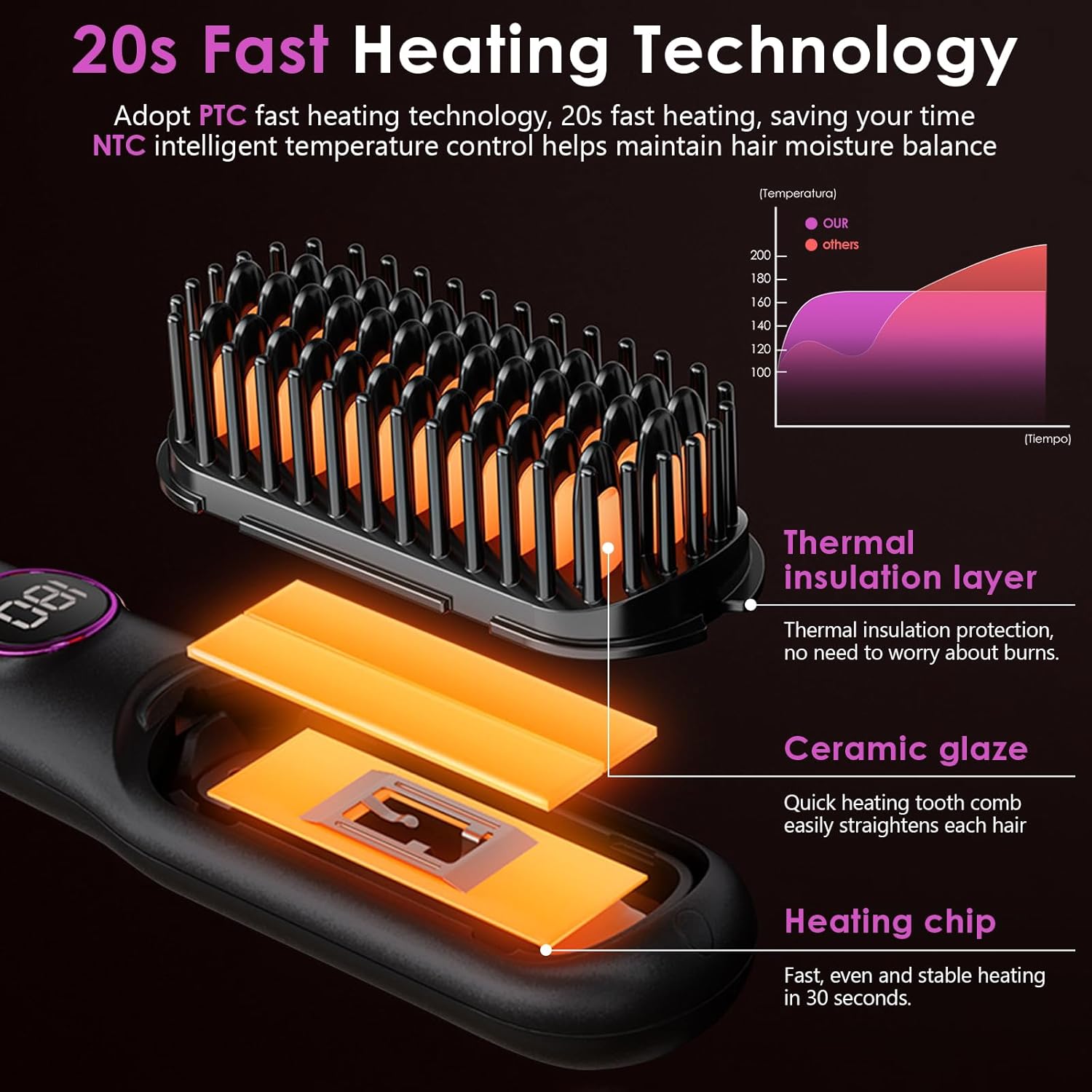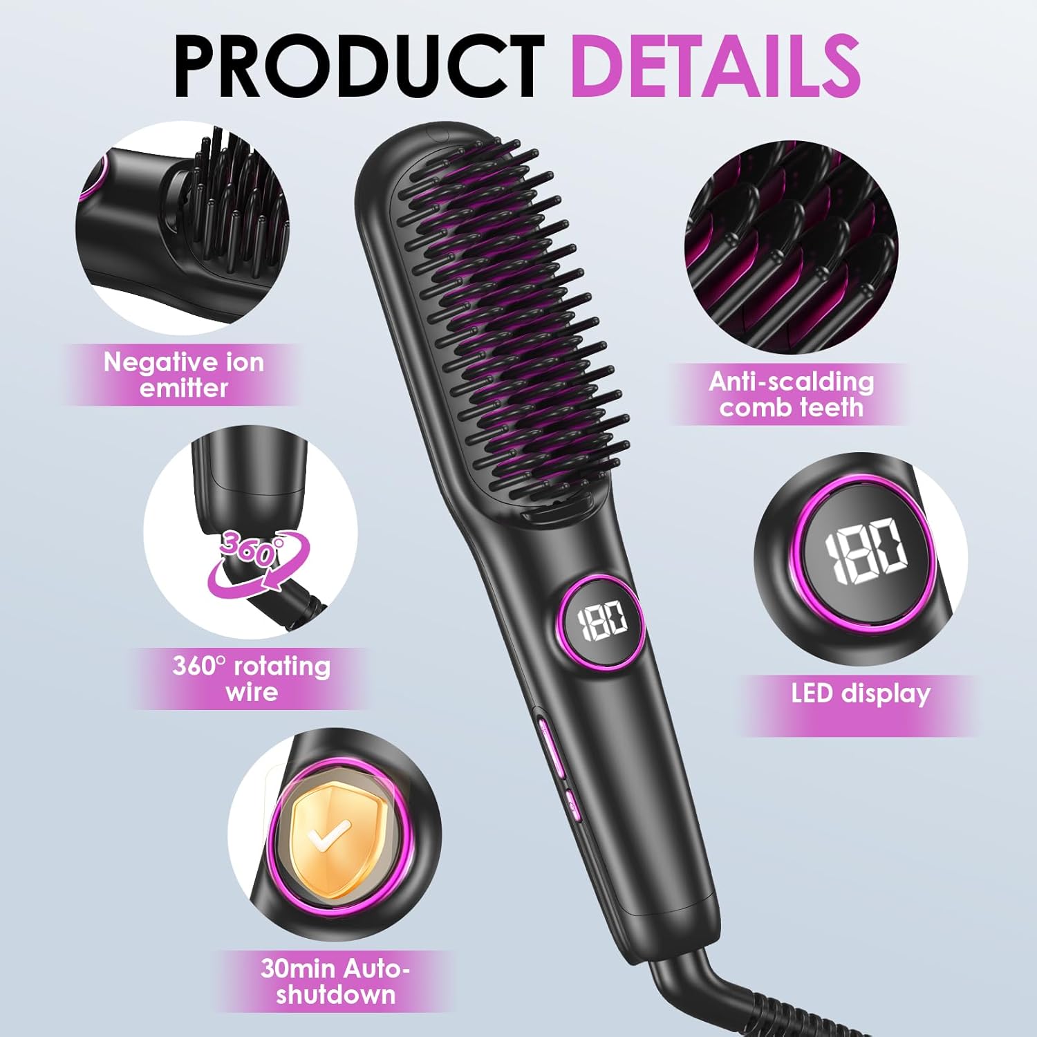 - 【9 Temperaturen】 Unsere elektrische Haarbürste verfügt über 9 einstellbare Temperatureinstellungen: 140 °C – 220 °C, geeignet für alle Haartypen. Der LED-Bildschirm zeigt die Temperatur in Echtzeit an. Strapaziertes Haar 140–160 °C,