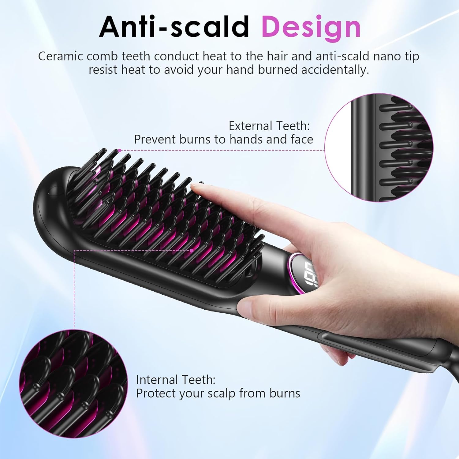 - 【Verbrühungssicheres Design】 Der Haarglätter Bürste verfügt über ein Verbrühungssicheres Design, die beheizten Innenzähne sorgen für gleichmässige und stabile Wärme, die Verbrühungssicheren Aussenzähne und die Verbrühungssicheren