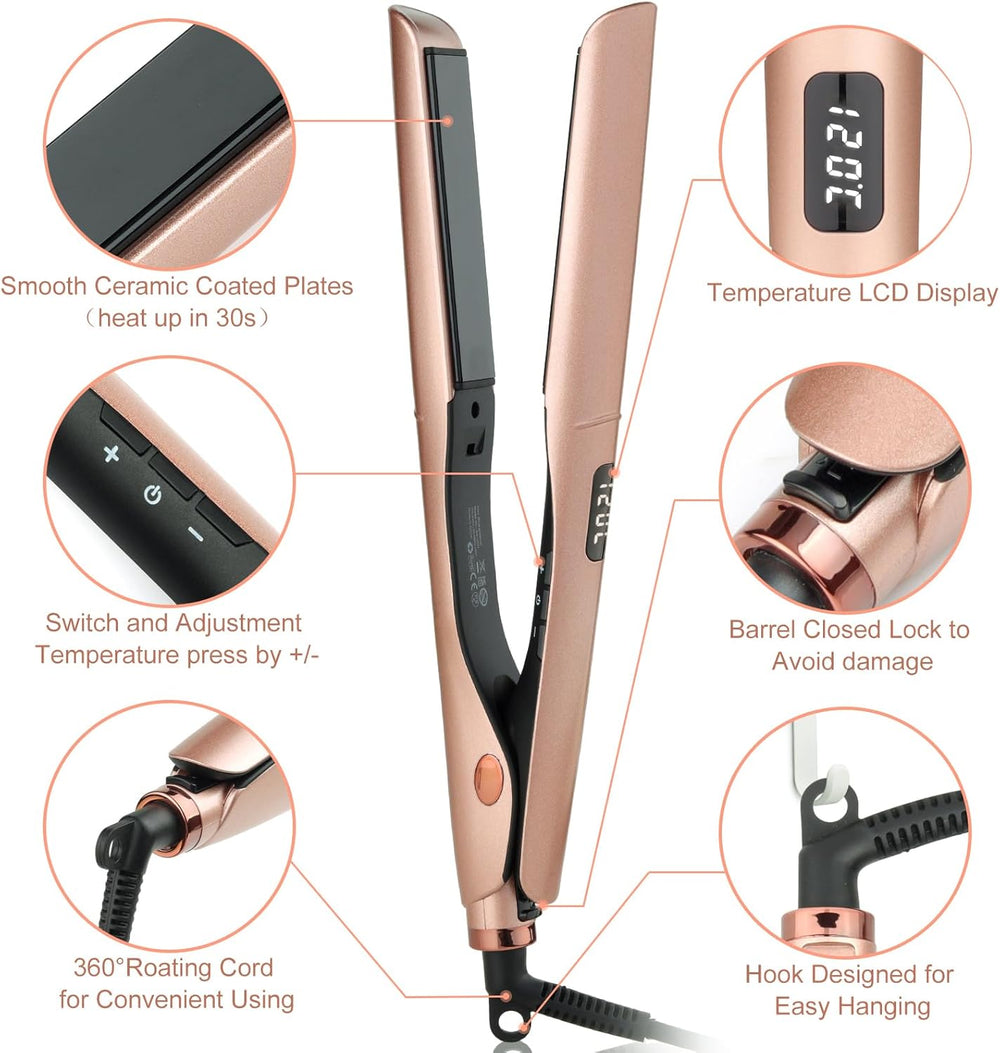 - LCD-Anzeige: Sie können die Temperatur des hair straightener durch das Display deutlich sehen. Darüber hinaus machen die automatische Sicherheitsabschaltung nach 60 Minuten und das um 360 Grad drehbare Netzkabel und der Verriegelungshaken den Gebrauch