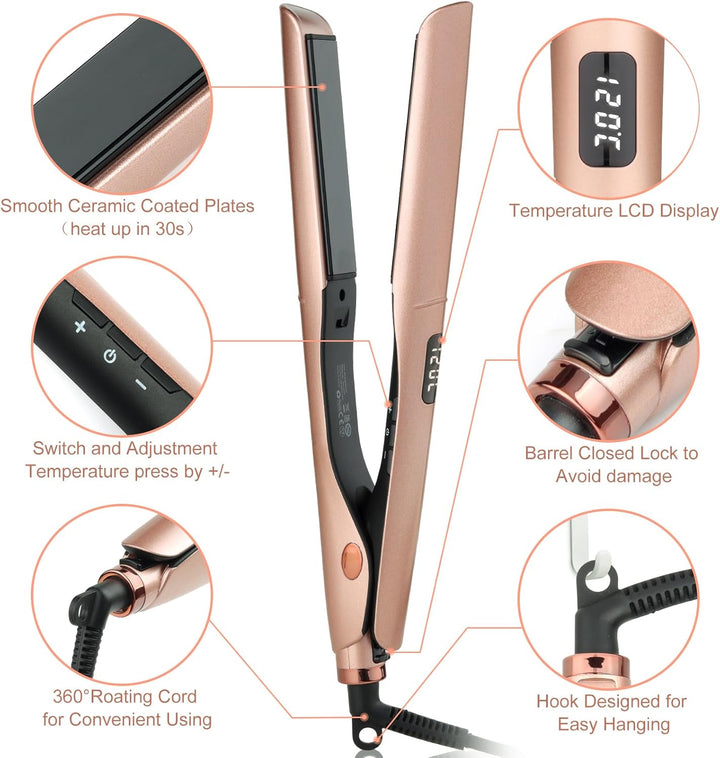 - 2 in 1 Professionelle Glätteisen: Glätteisen locken und glätten kann das Haar entweder glätten oder locken. 30 Sekunden lang kann er das Haar auf die gewünschte Temperatur glätten oder locken. Sparen Sie Zeit in der morgendlichen Rushhour und