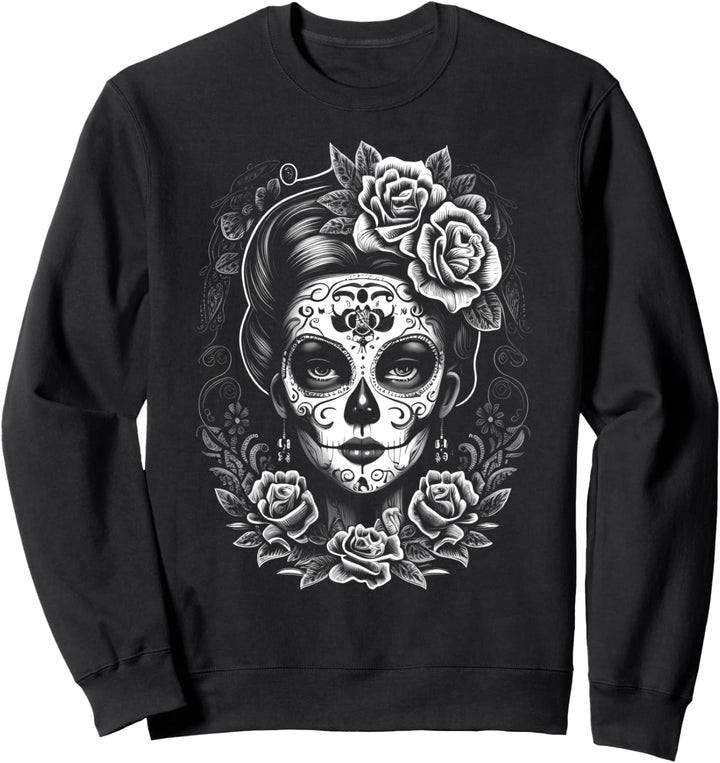 Gothic Style Beauty Catrina Sugar Skull Skelett Dame Sweatshirt