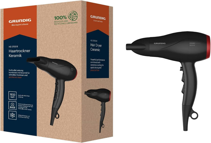 - Dank kraftvoller Kaltstufe festigt und stabilisiert der Haartrockner mit Diffusor das Haar