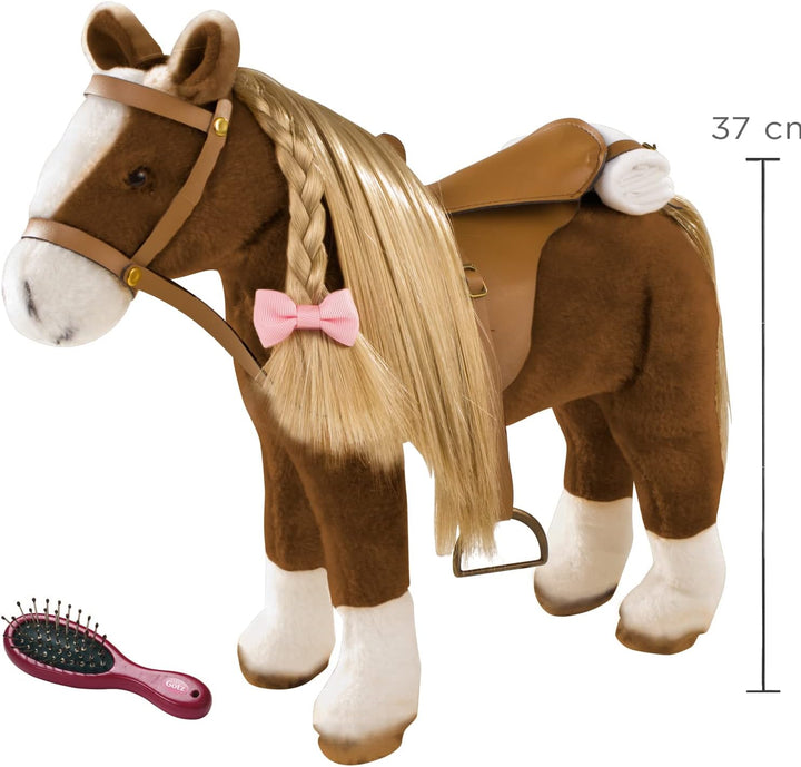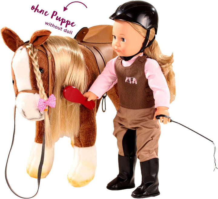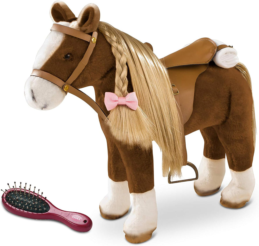 - Lieferumfang: 1 x Kämmpferd "Brown Beauty", inkl. Sattel, Zaumzeug, Picknickdecke & Bürste von Götz.