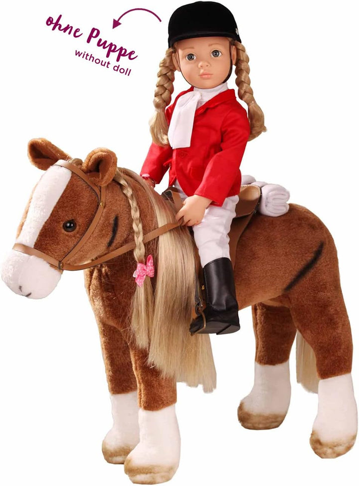 - Passend für: Das Plüschpferd hat eine Gesamtgrösse von 52 cm (Stockmass 37 cm) und ist für Stehpuppen der Grössen XS (27 cm) sowie XL (45 - 50 cm) geeignet.