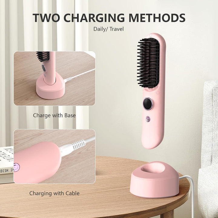 - Aufgerüsteter Haarglätter Bürste Kabelloser:Zwei Lademethoden: 1. Schliessen Sie bei der Verwendung zu Hause die Basisstation an die Stromversorgung an, um die beheizte Haarbürste aufzuladen und die Stromversorgung jederzeit aufrechtzuerhalten. 2.