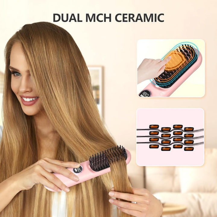 - Beheizte Keramikzähne:Die Haarglättungsbürste verfügt über zwei Arten von Zähnen und ist mit der MCH-Heiztechnologie kombiniert, was bedeutet, dass die Keramikbeschichtung eine stabilere und gleichmässigere Wärme liefert und Hitzeschäden an