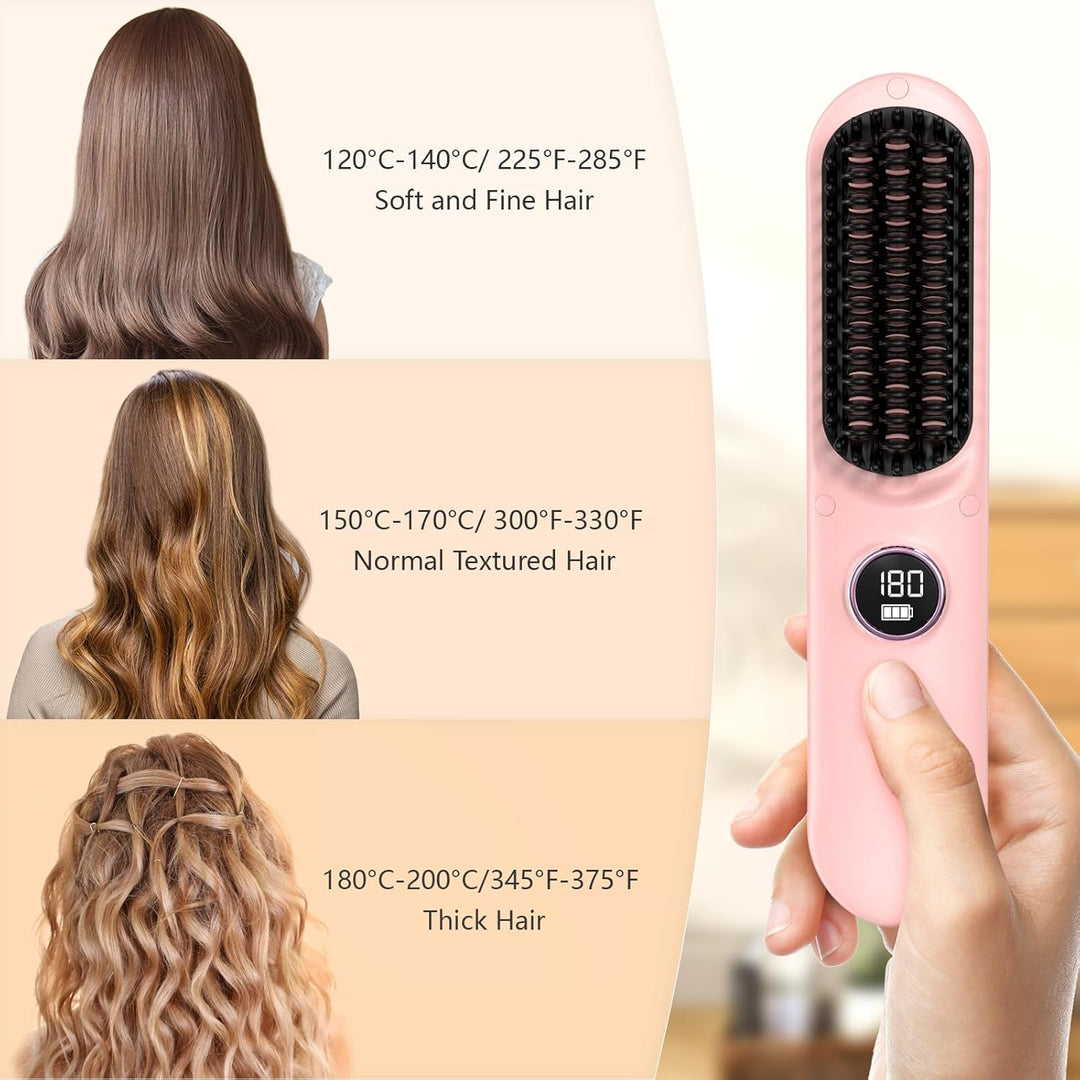 - 8400mAh Akku:Die kabellose, beheizte Haarbürste verfügt über einen eingebauten 8400mAh akku, dessen vollständige Aufladung über die Basis etwa 2,5 Stunden und über das 5V/ 2A Kabel 2 Stunden dauert und die für 20 bis 30 Minuten verwendet werden