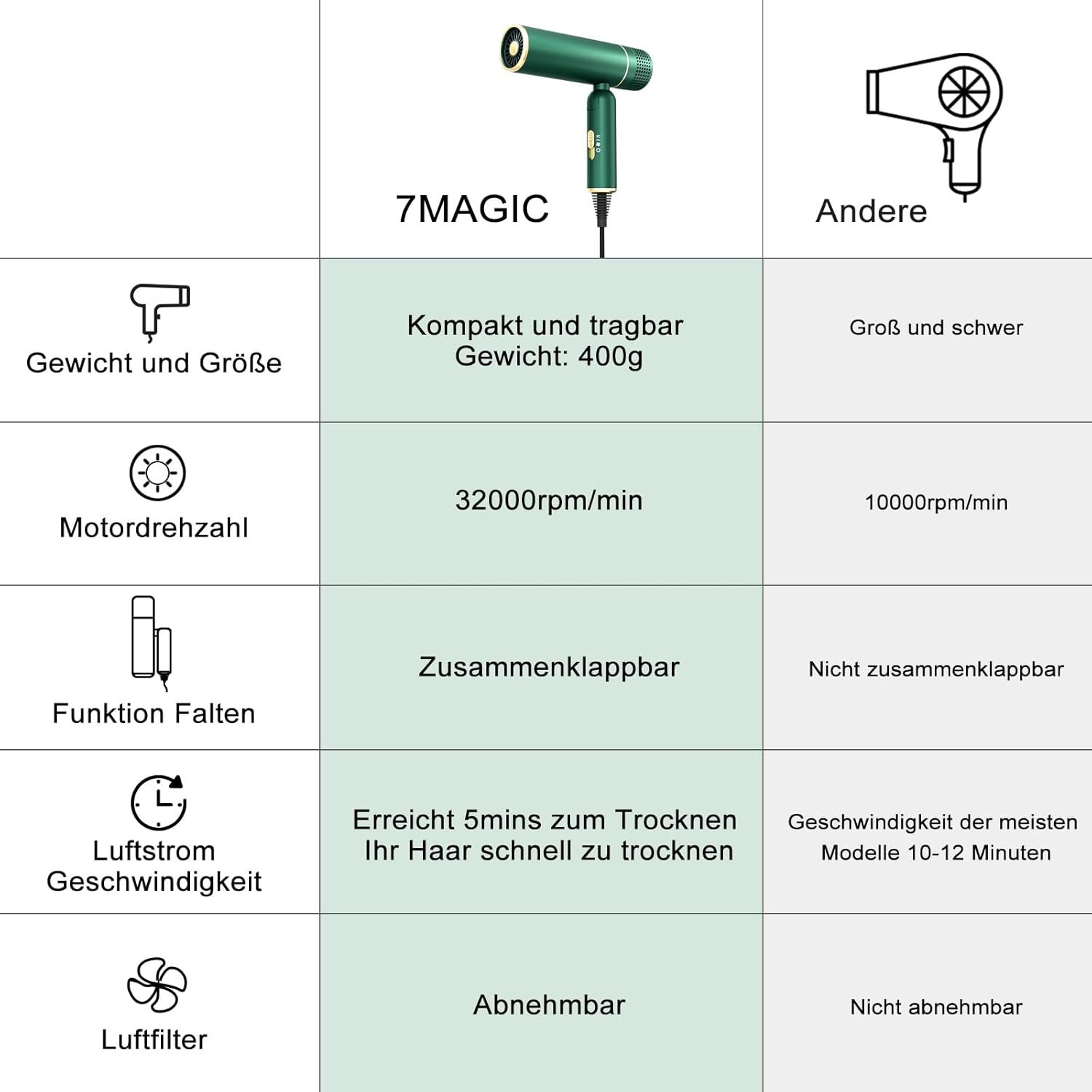 - Faltbar, Kompakt und Leicht - Das faltbare Design ermöglicht eine einfache Aufbewahrung während der Reise, ohne zusätzlichen Platz zu beanspruchen. Das leichte und schlanke Design hilft, Ermüdung der Arme beim Trocknen der Haare zu vermeiden. Der