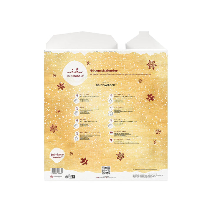 - 🎄 Adventskalender 2023 "happy healthy hair" von invisibobble: Entdecken Sie 24 exklusive Haar-Accessoires, von Haargummi bis Haarschmuck, perfekt für die festliche Saison.