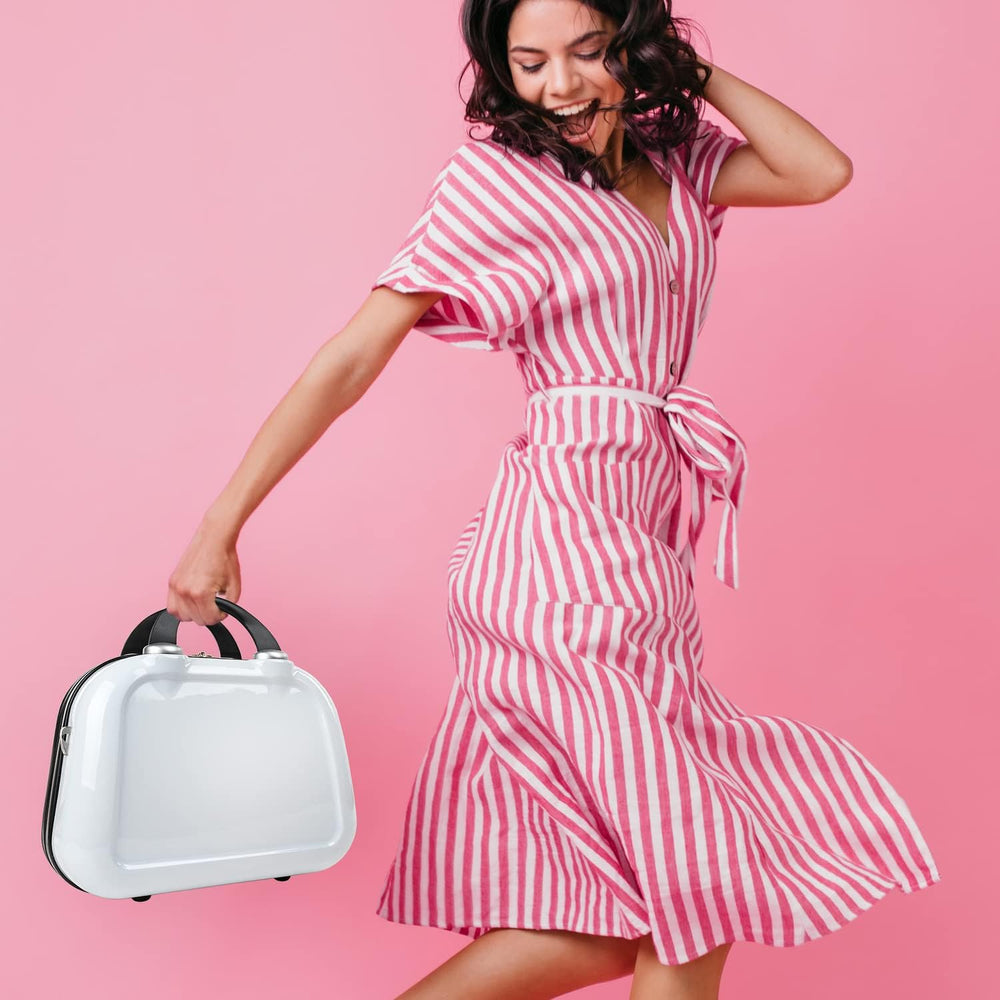 - Einfacher Transport: Ausgestattet mit einem praktischen Trolley und ausziehbarem Griff ermöglicht der Kosmetikkoffer müheloses Tragen Ihrer Kosmetikartikel, während seine Kompatibilität mit den Abmessungen von Handgepäck Koffer Hartschale ideal ist,
