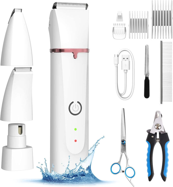 - 4 in 1 Profi Schermaschine für Hunde: Das Professionelles Haustierpflege Set wird mit 4 Edelstahl-Ersatztrimmerköpfen: Scherkopf, Detail Trimmerkopf, gebogener Kopf, Schleifkopf. Es kommt auch mit zusätzlichen Geschenken: Schere, Nagelknipser, Feile,