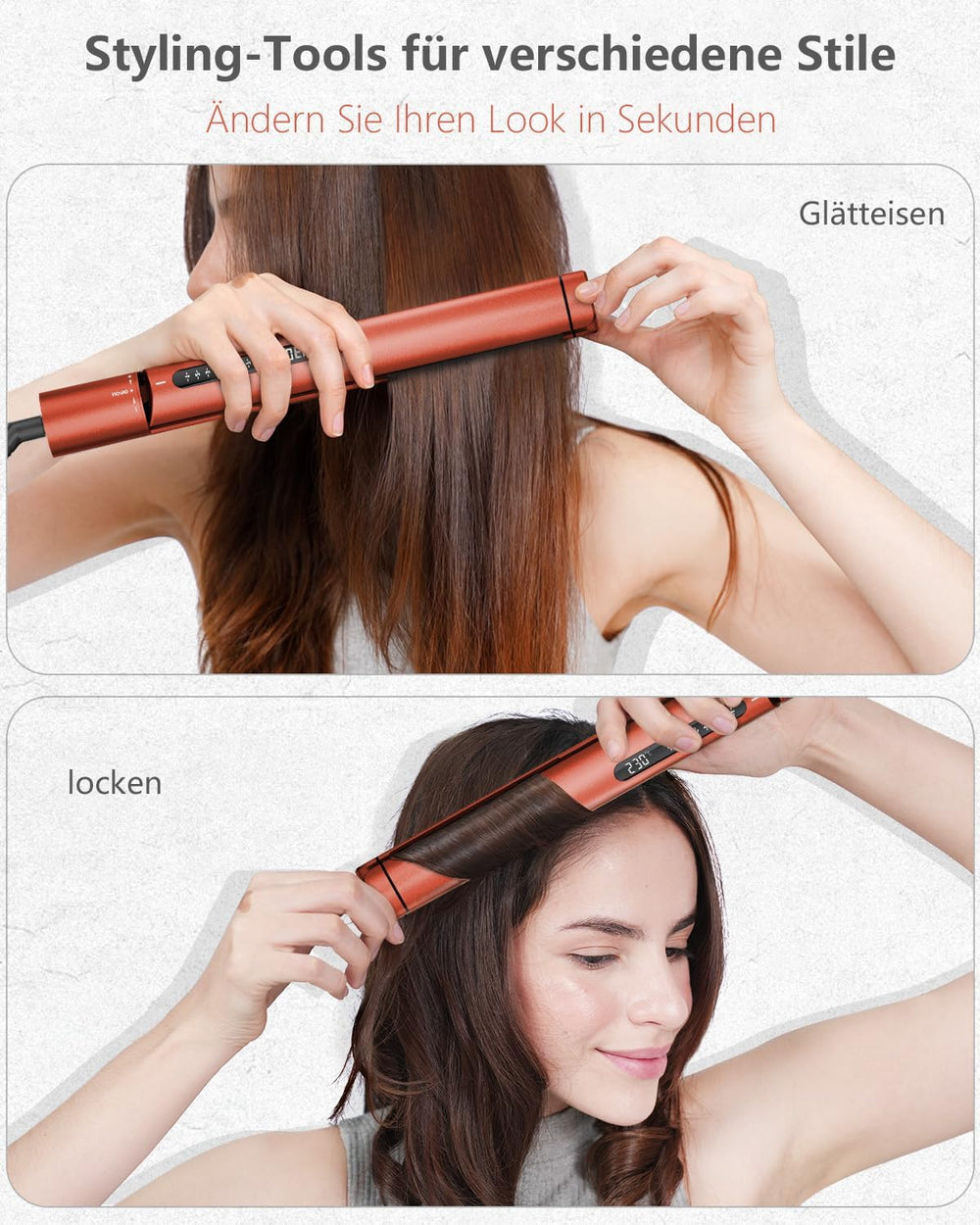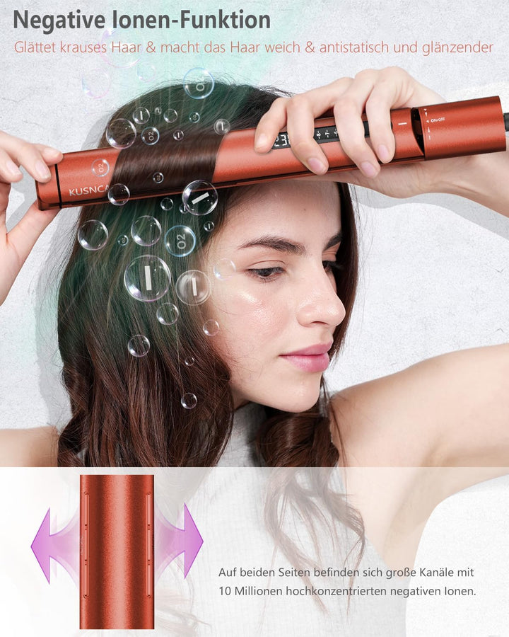 - Innovatives gesundes Aussehen: KUSNCA lockenstab und glätteisen 2 in 1 professionelle haarglättung doppelseitiges design 10 Millionen hochkonzentrierte negative Ionen Large Channel, antistatisch für glänzenderes, weicheres und gesünderes Haar. Die