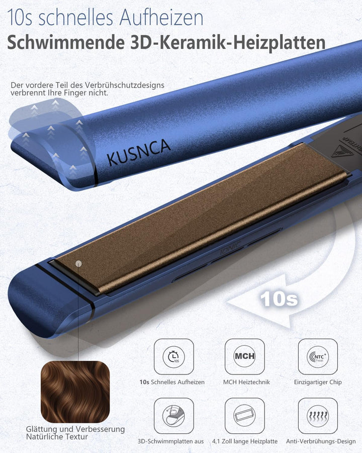 - Zeitsparender Verbrühungsschutz: Glätteisen mit fortschrittlicher MCH-Heiztechnologie und einer einzigartigen C-Sensor-Funktion (automatische Temperaturkalibrierung) ist der KUSNCA Flat Head Haarglätter mit einer 4,1 Zoll langen Heizplatte