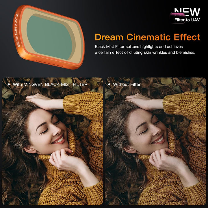 - Dieser schwarze Nebelfilter (Black Diffusion 1/4 Filter) kann Falten, Sommersprossen und Poren der Gesichtshaut mildern und sie zarter, praller und wunderschöner machen. Der Nebel-Traum-Effekt lässt sich besser realisieren, indem die Filmeffekte