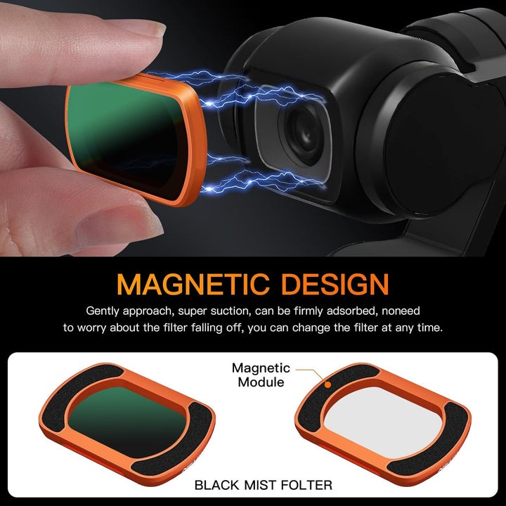 - Magnetisches Design für einfache Installation und Entfernung. Es hat eine starke Adsorptionskraft, und es ist dünn genug, um auf das Objektiv zu passen und zu bleiben, wenn Sie die Kamera ausschalten und der Kamerakopf sich selbst einschaltet.