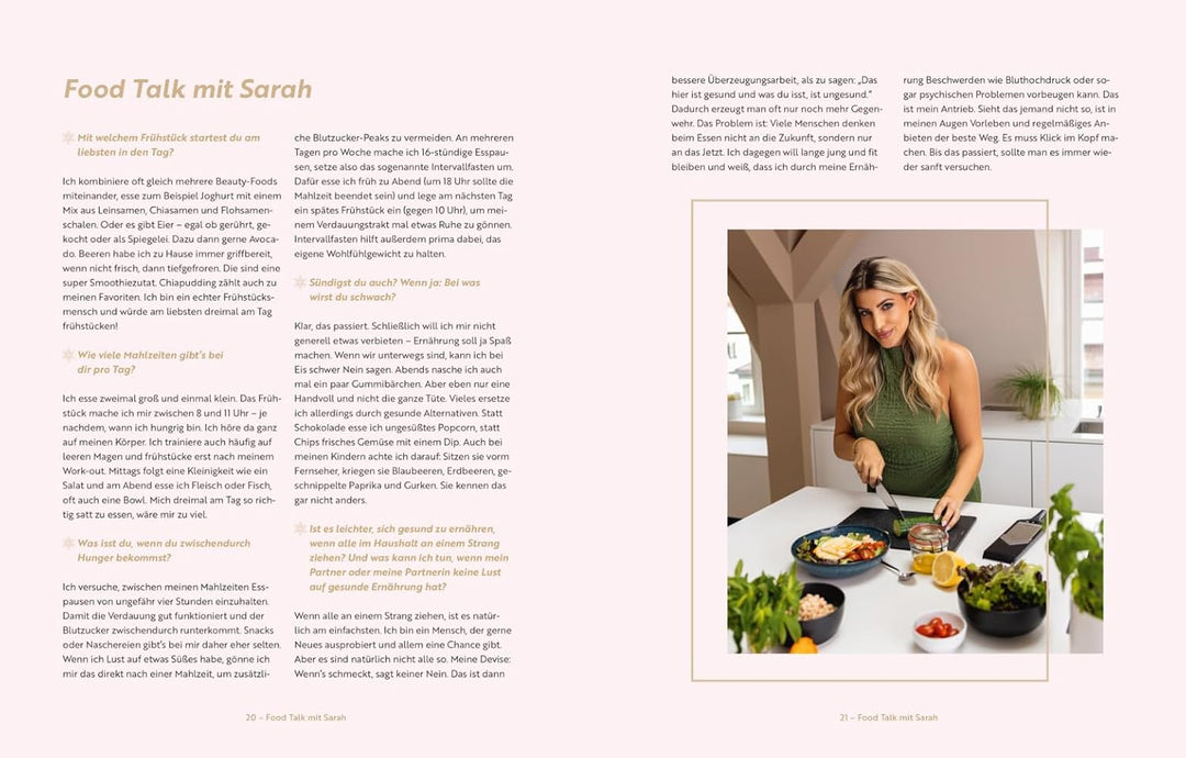 Gesünder und strahlender mit jedem Biss. Geht das? „Ja!“, sagt Sarah Harrison. Die bekannte Influencerin zeigt sich täglich online – und Millionen Menschen schauen hin. Ihr Geheimrezept, damit sie vor der Kamera auch ungeschminkt den perfekten Glow hat: Beauty Food! Die dreifache Mutter greift gezielt zu Lebensmitteln, die ihren Körper und ihre Haut fit halten. Dabei hat sie auf genussvolle Art gelernt: Nicht nur wahre Schönheit kommt von innen. Wer das Richtige isst, kann dadurch auch seinen Darm auf Trab bringen, das Immunsystem pushen, die Laune bessern – und natürlich leichter sein Gewicht halten. In ihrem Buch präsentiert Sarah Harrison ihre 60 Beauty-Booster-Rezepte und verrät zudem ihre alltäglichen Food-Hacks. Wie funktioniert Anti-Aging aus der Küche? Warum ist es so wichtig, das Mikrobiom und damit die guten Bakterien im Darm zu stärken? Und auf welche Lebensmittel muss ich für schöne Haut, Haare und Nägel setzen? Ein Muss für alle, die sich schön, fit und happy kochen wollen. Mehr lesen