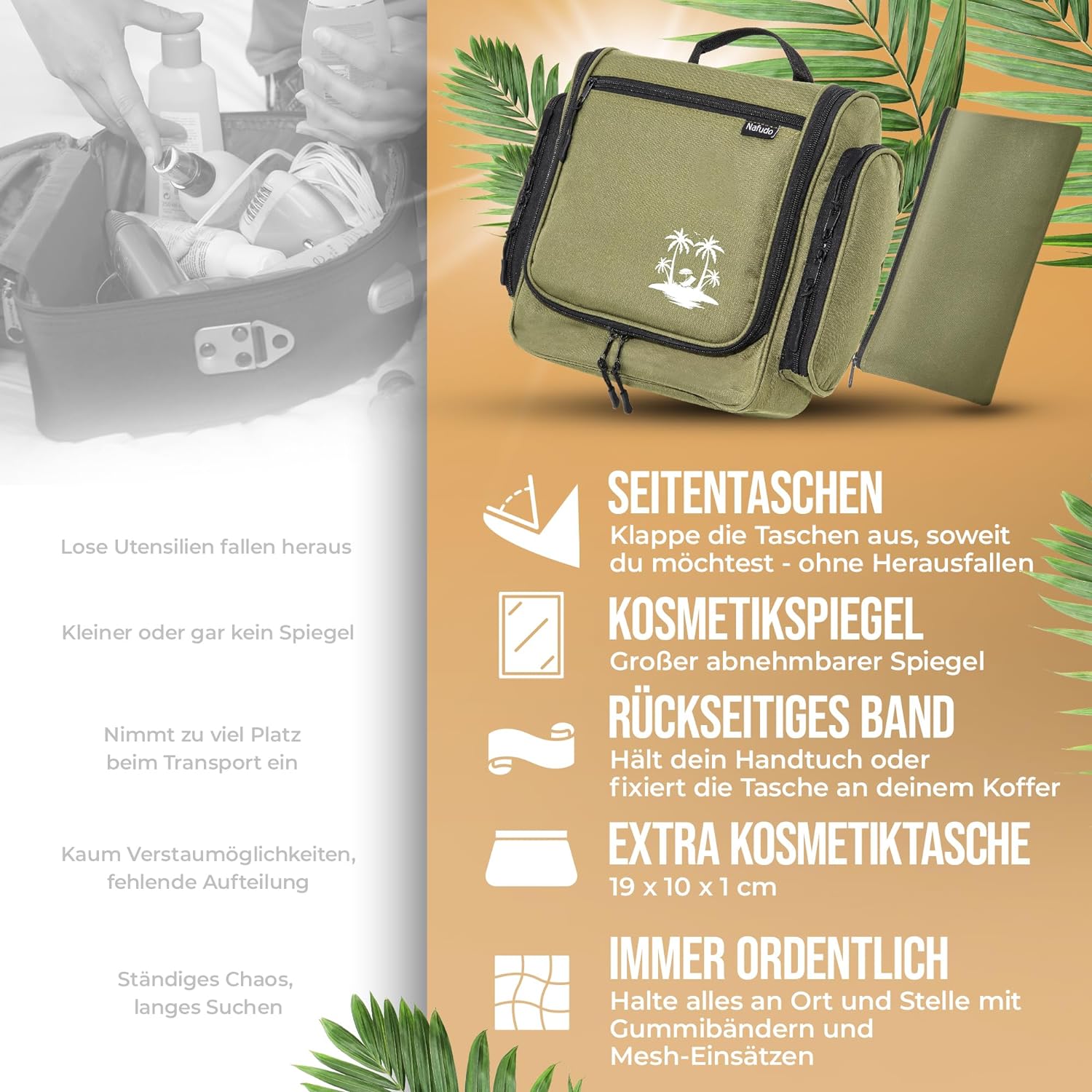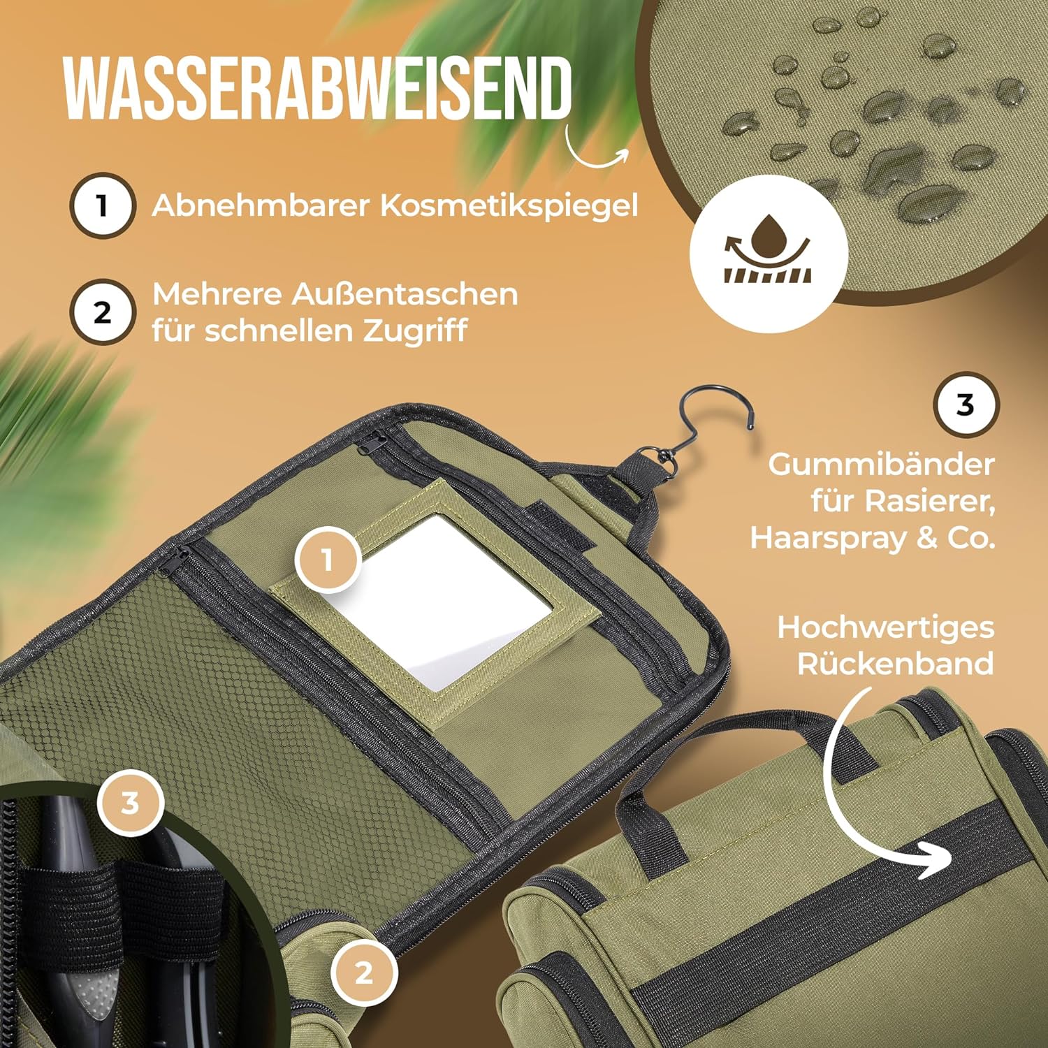 - UNISEX - Ob als Herren-Kulturtasche oder Damen-Kulturbeutel: Unsere Waschtasche zum Aufhängen ist für jeden das Necessaire der Wahl. Viel Stauraum, unsere Premium- Qualitätsfertigung und die cleveren Zusatzfächer sorgen für entspannte und sortierte