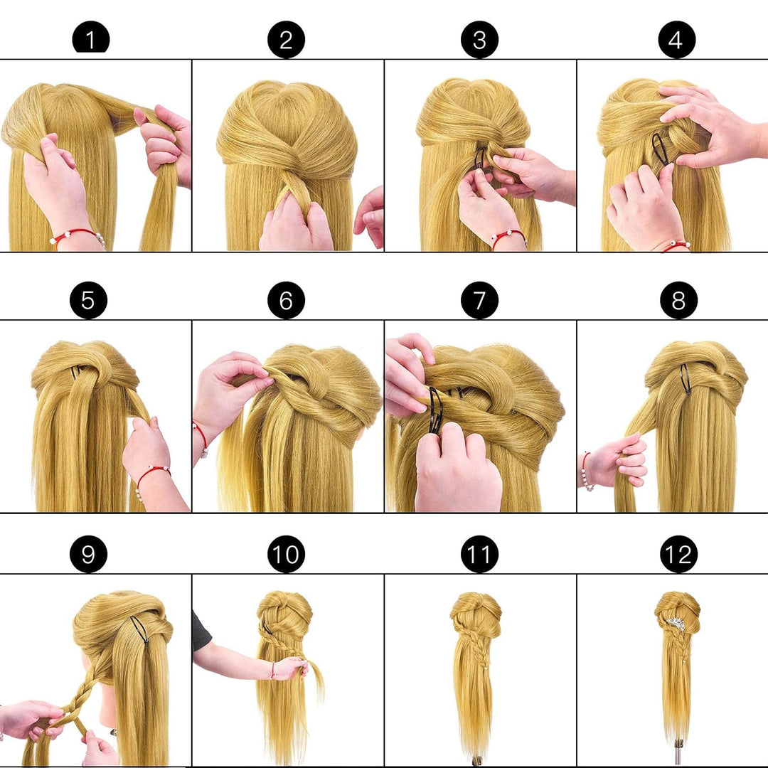 - Perfektes Set - Trainingskopf + Klemme + Flechtzubehör, Sie können viele schöne Frisuren machen, wie Sie möchten.