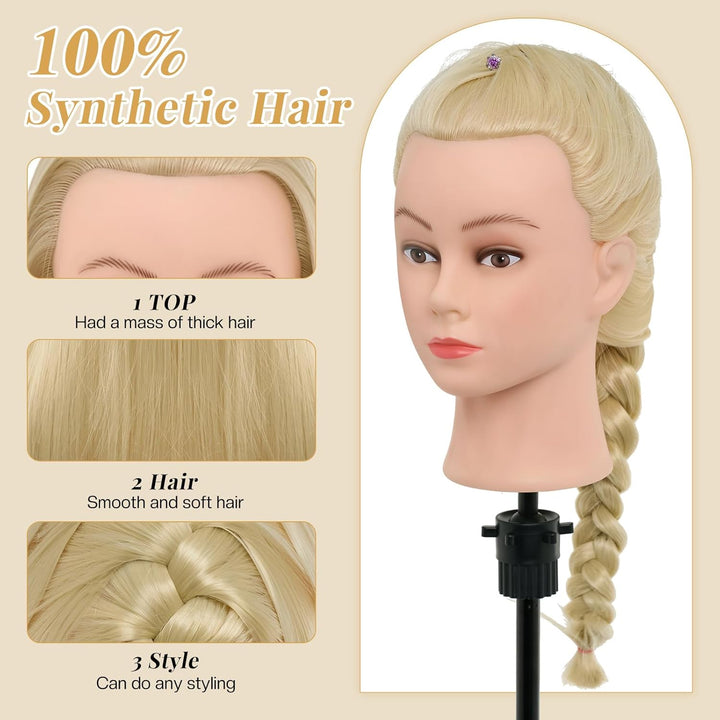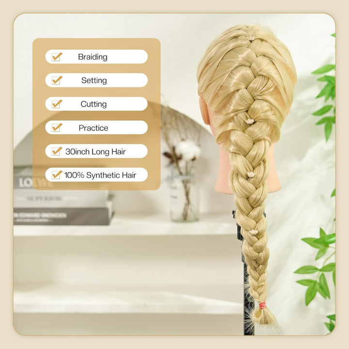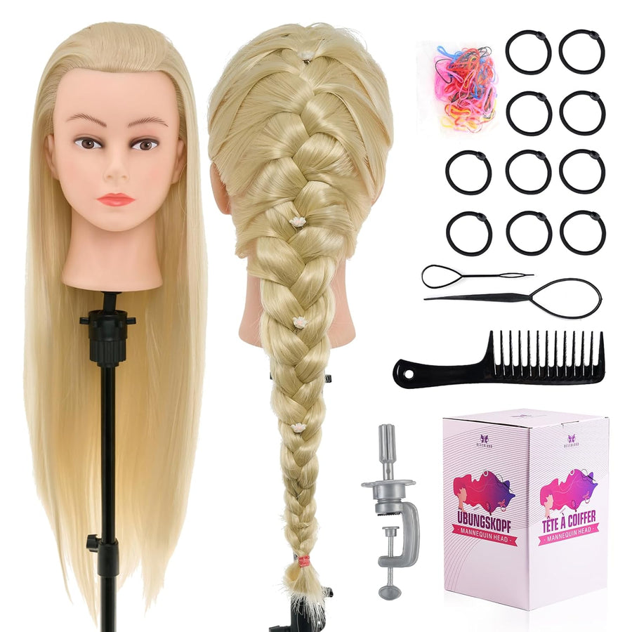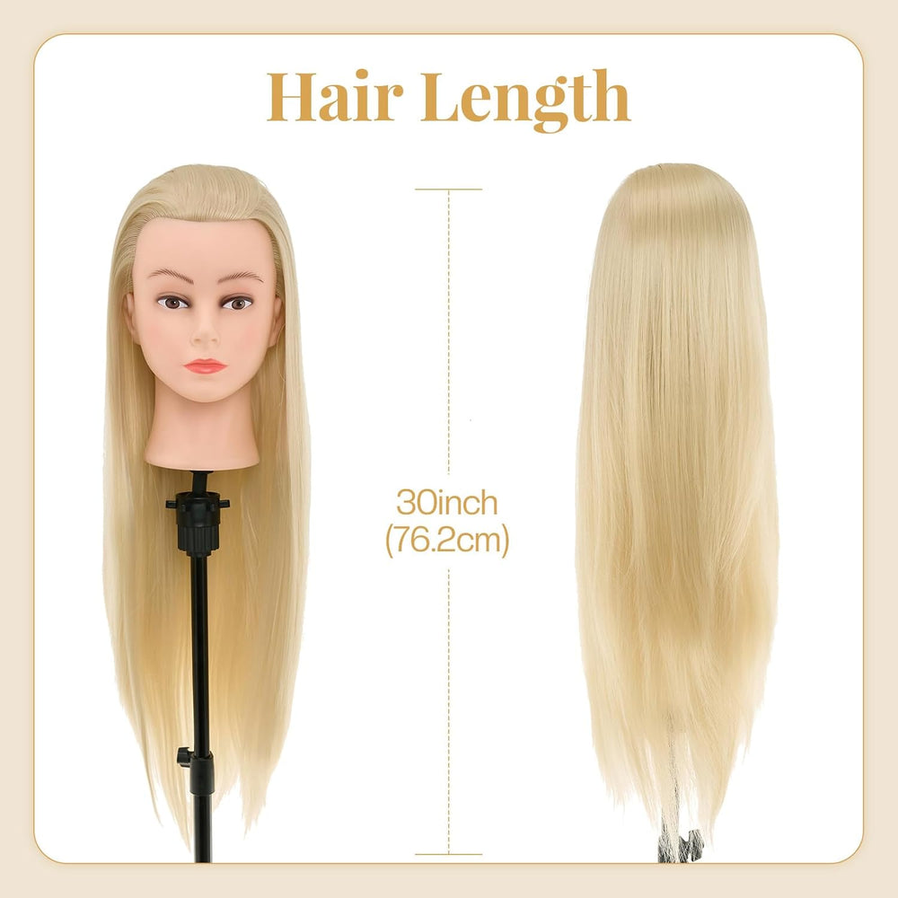 - Haar Material: 30 Zoll(76cm) frisierkopf, 100% Synthetisches Haar. Der Übungskopf ist geeignet für Flechten, Schneiden, Sie, um verschiedene geflochtene Haarstyling, Design Arten von schönen Frisuren zu machen