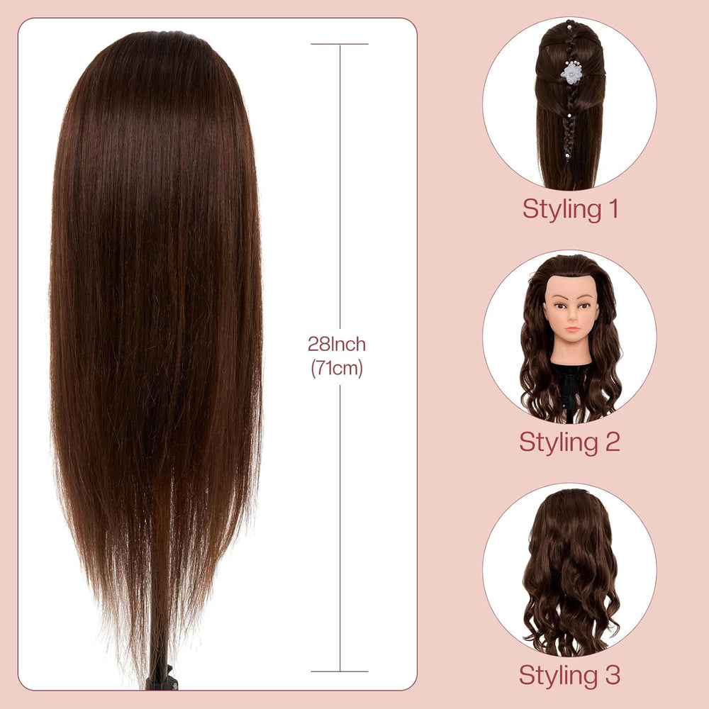 - Haar Material: Frisierkopf übungskopf mit 60% Echthaar. Haarlänge ist 28 Zoll (ca.71 cm). Nicht bei einer Temperatur von über 180 Grad föhnen, Dauerwelle nicht länger als 15 Sekunden anwenden