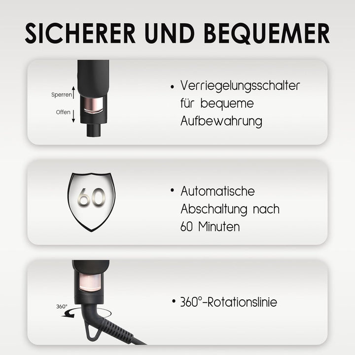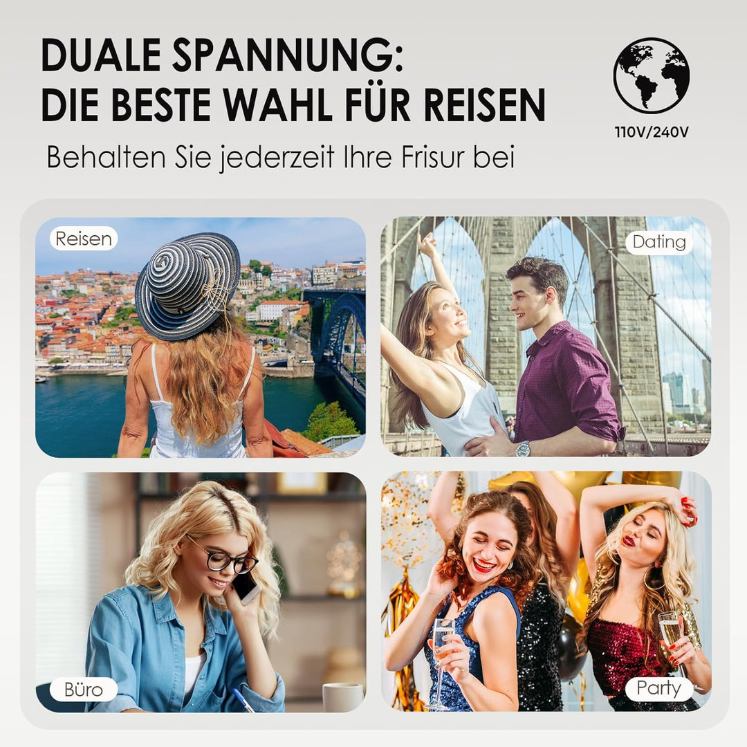 - √【100-240V Dual Voltage, Die beste Wahl für Reisen】 Der Haarlockenwickler mit 100-240V Doppelspannung ermöglicht es Ihnen, ihn in jedem Land innerhalb dieses Spannungsbereichs zu verwenden, nicht nur zu Hause, sondern auch auf Reisen im Ausland.